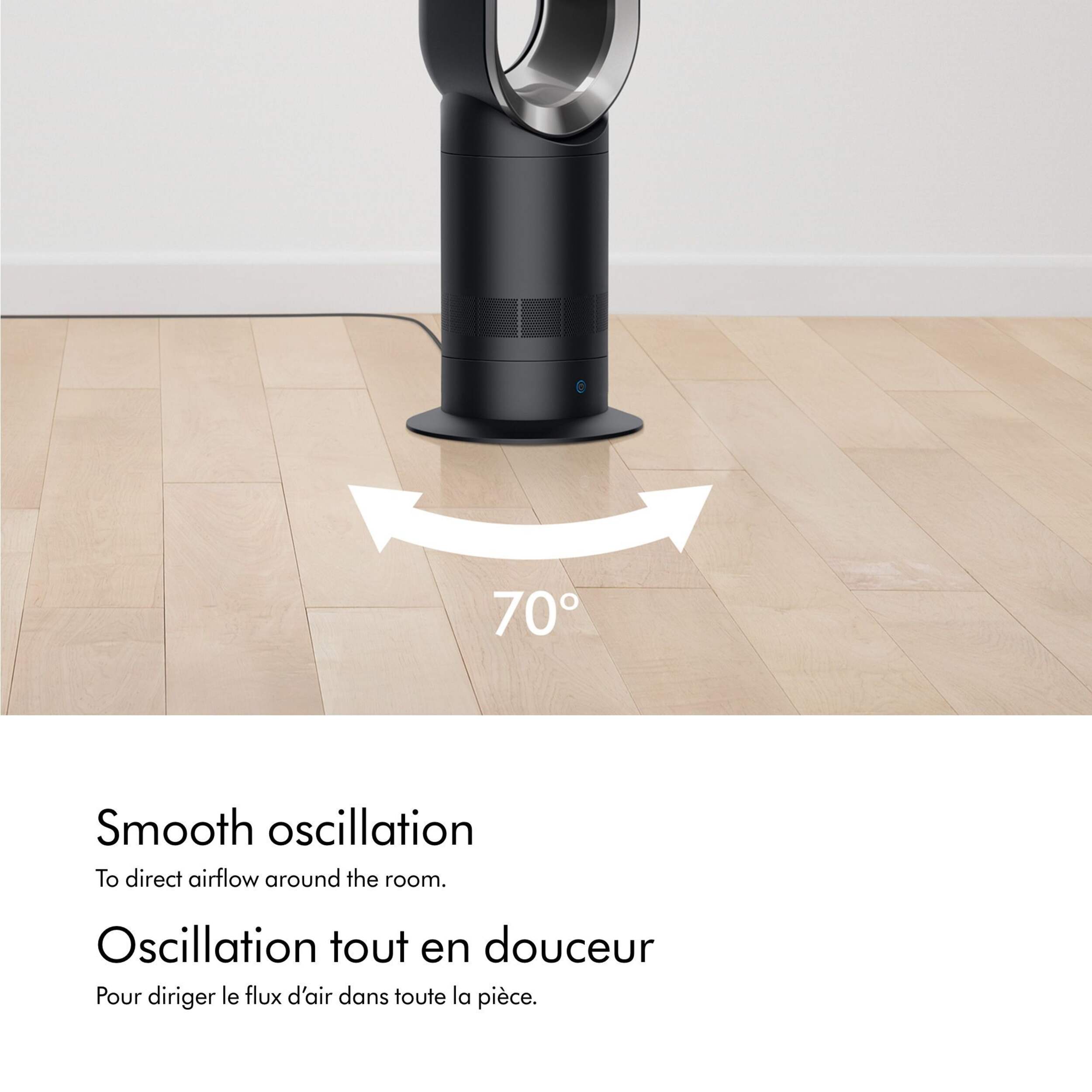 Features patented Air Multiplier™ technology, where the air is accelerated through an annular aperture, drawing in surrounding air to project smooth, powerful, high-velocity airflow, with no blades and no choppy air