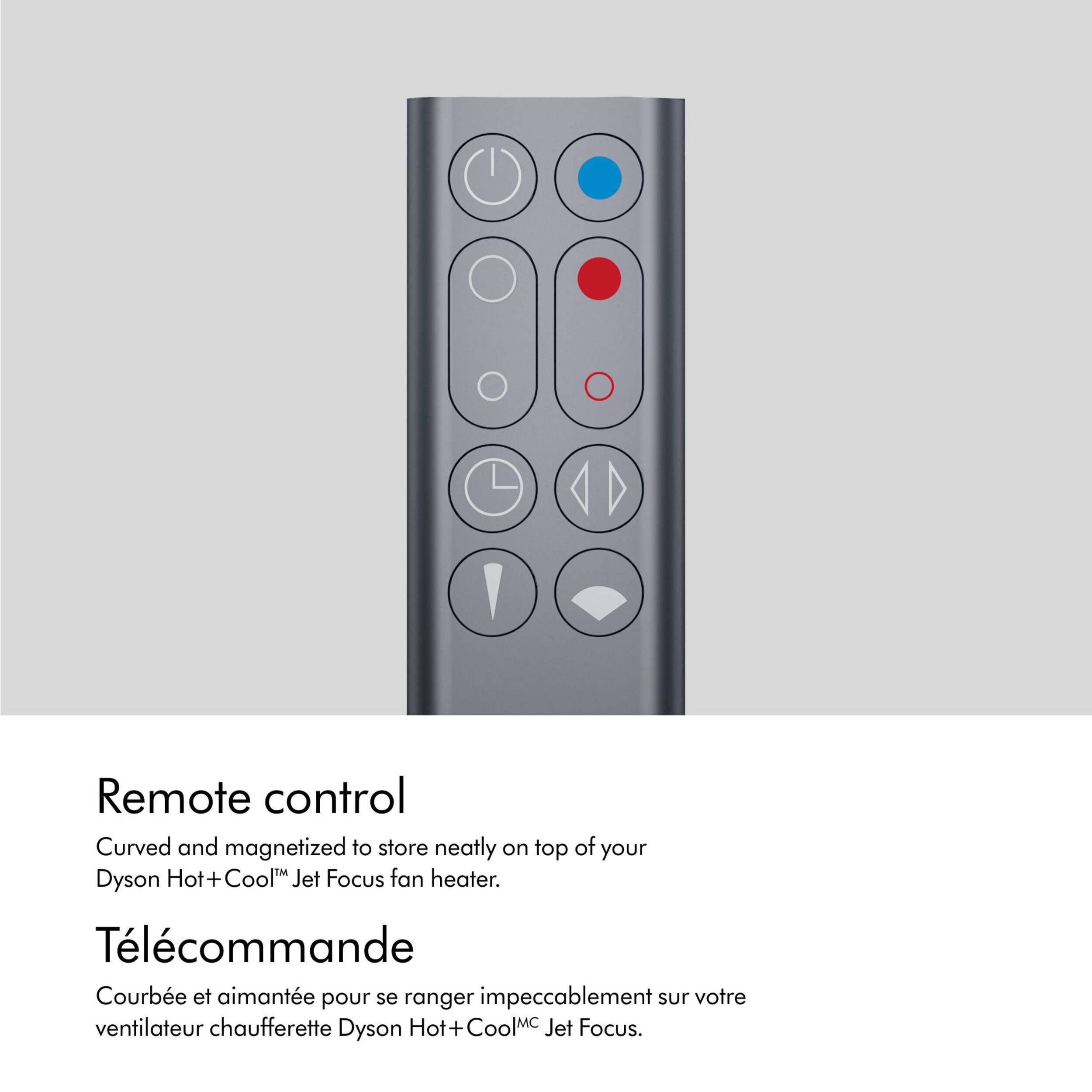 Includes remote, curved and magnetized to store neatly on your Dyson Hot+Cool™ Jet Focus fan heater