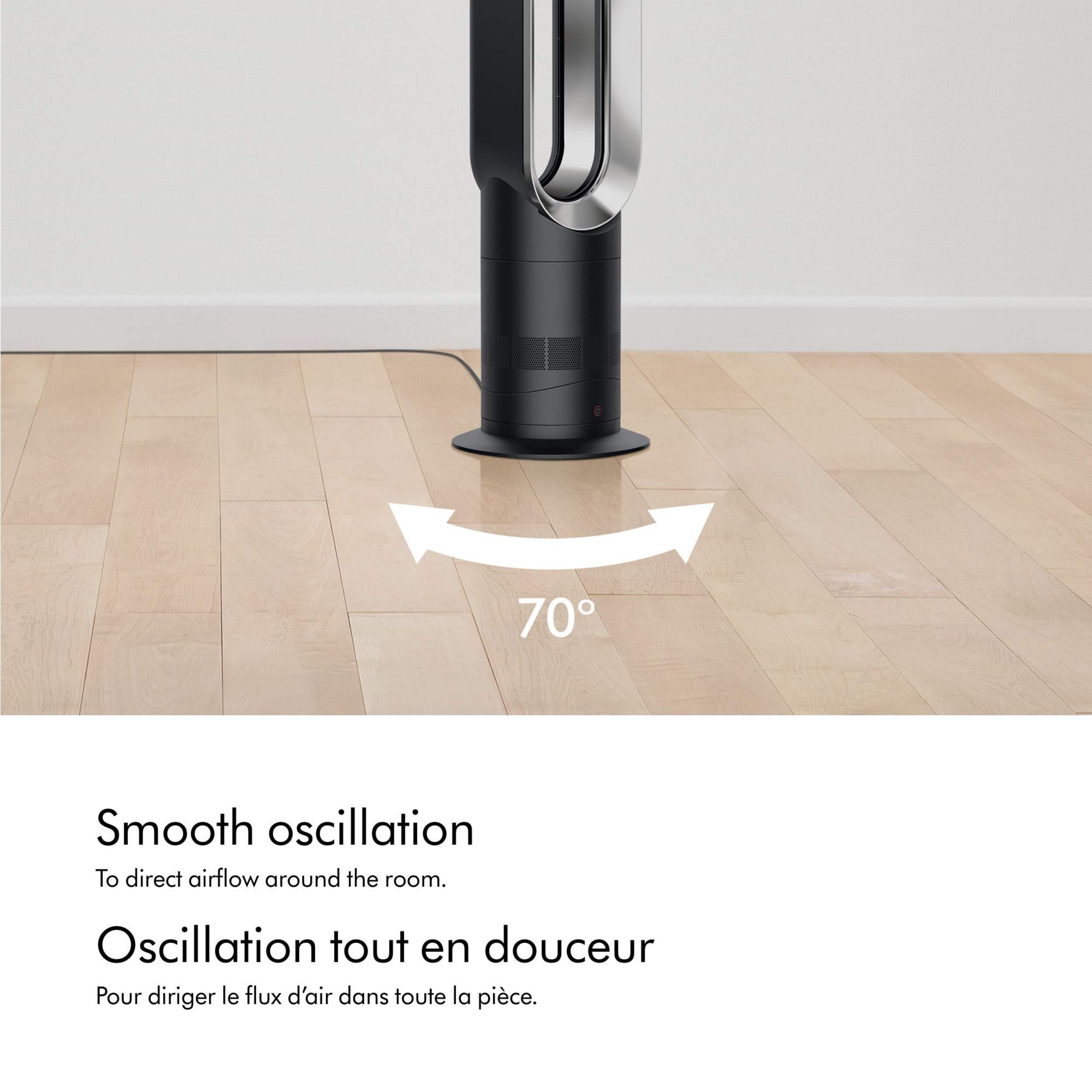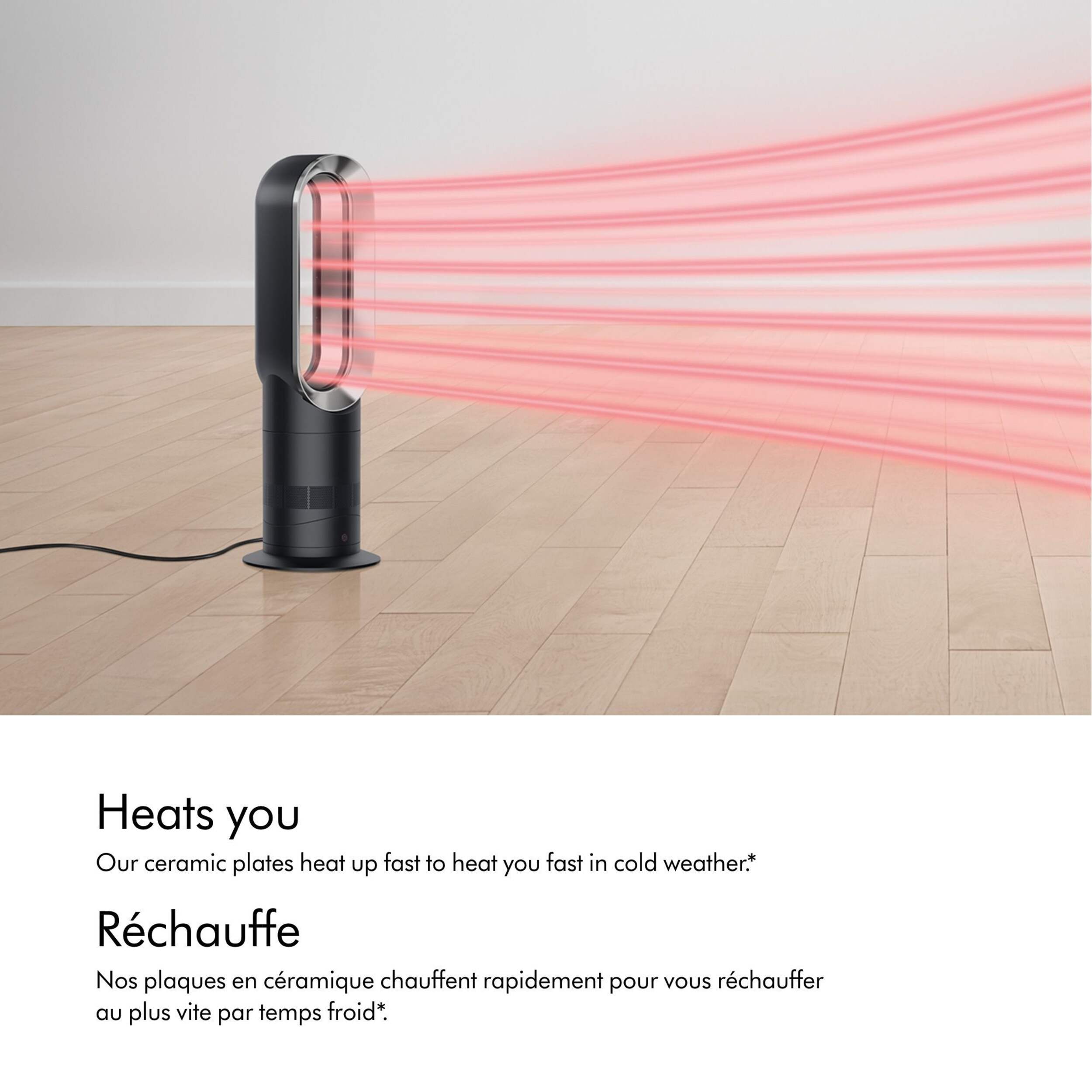 Keep rooms at the perfect temperature with the Dyson AM09 Hot+Cool™ Oscillating Portable Fan & Space Heater. This multi-function fan/heater provides fast, even room heating and powerful personal cooling. It features Air Multiplier™ technology that amplifies surrounding air, giving an uninterrupted stream of smooth airflow and Jet Focus control for whole-room heating or direct cooling. With a convenient remote control that stores right on the fan so you'll never misplace it, this fan/heater ensures your comfort in any weather.