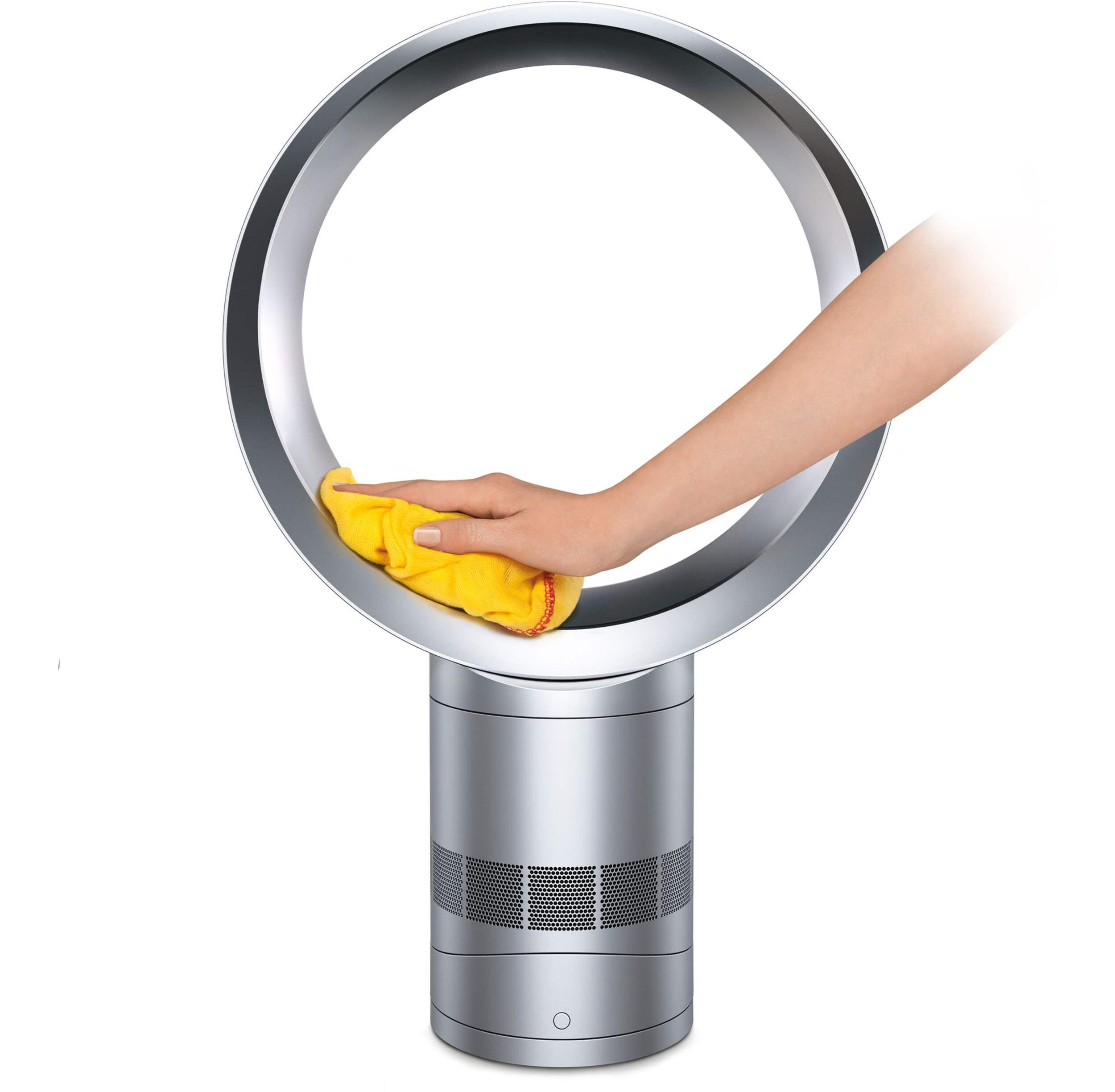 Dyson Cool™ Desk Fan features patented Air Multiplier™ technology where the air is accelerated through an annular aperture, drawing in surrounding air to project smooth, powerful, high-velocity airflow, with no blades and no choppy air