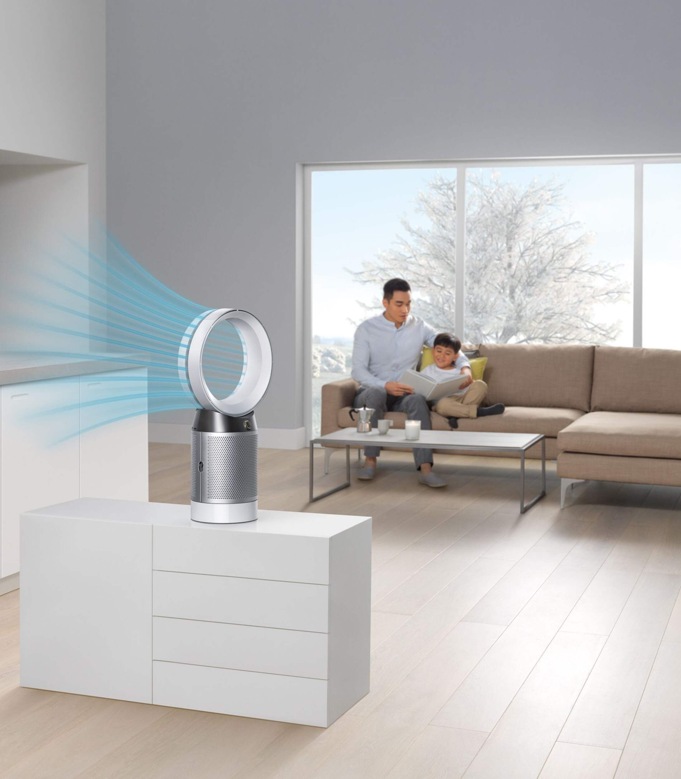 We design our purifying fans to go beyond test chamber conditions and focus on real home conditions – this is more than just having an efficient filter.¹ Dyson engineers and research concluded that to clean an entire room properly, you need to sense pollution events automatically; capture ultrafine pollutants; and project cleaner air around the room using Air Multiplier™ technology. Only the Dyson purifying fan is designed and tested to do all of this.²