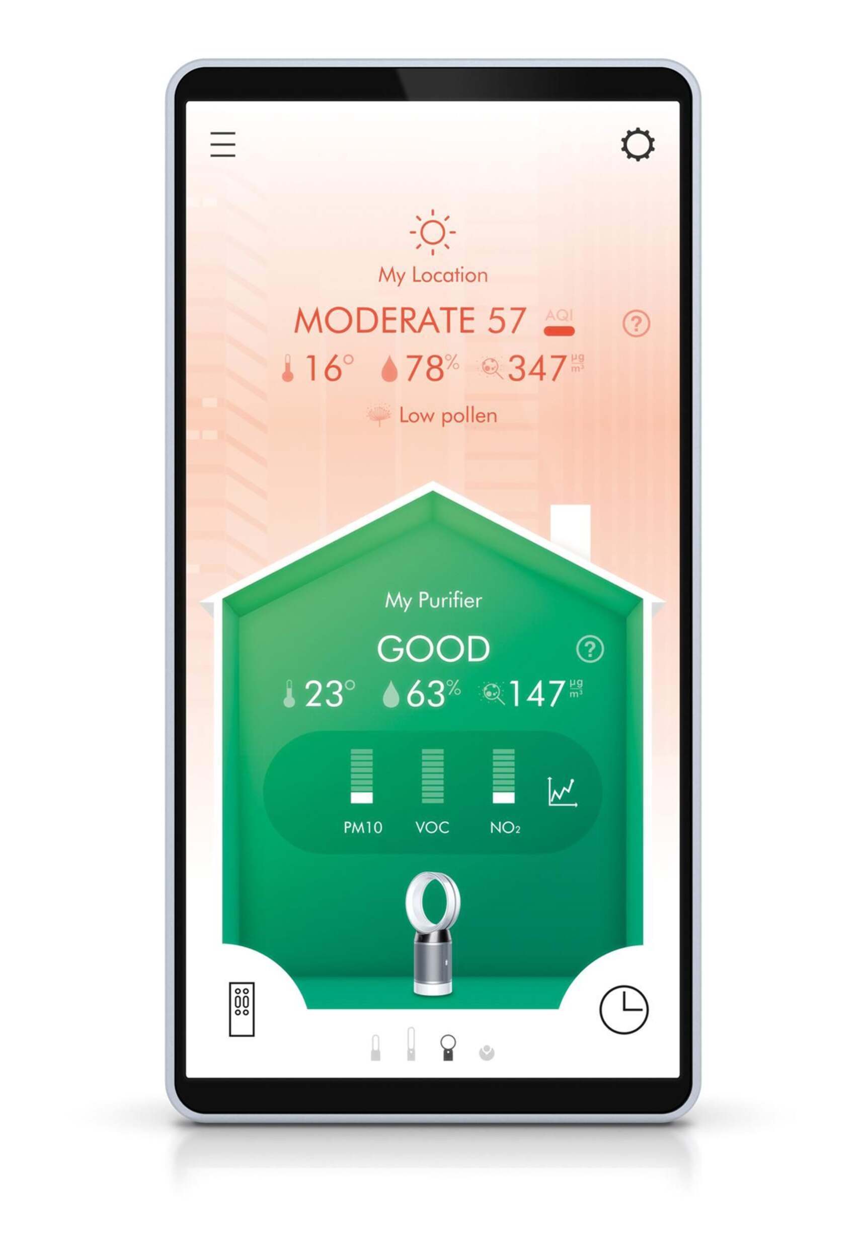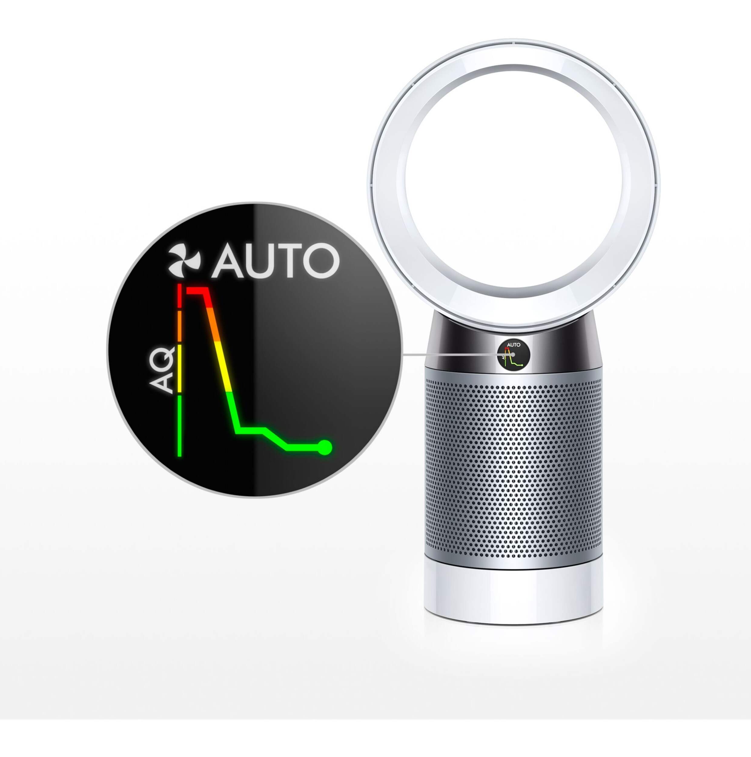 Dyson Pure Cool™ HEPA Air Purifier and Fan senses pollutants in real time and automatically detects and reports air quality levels on PM2.5, PM10, VOC and NO2