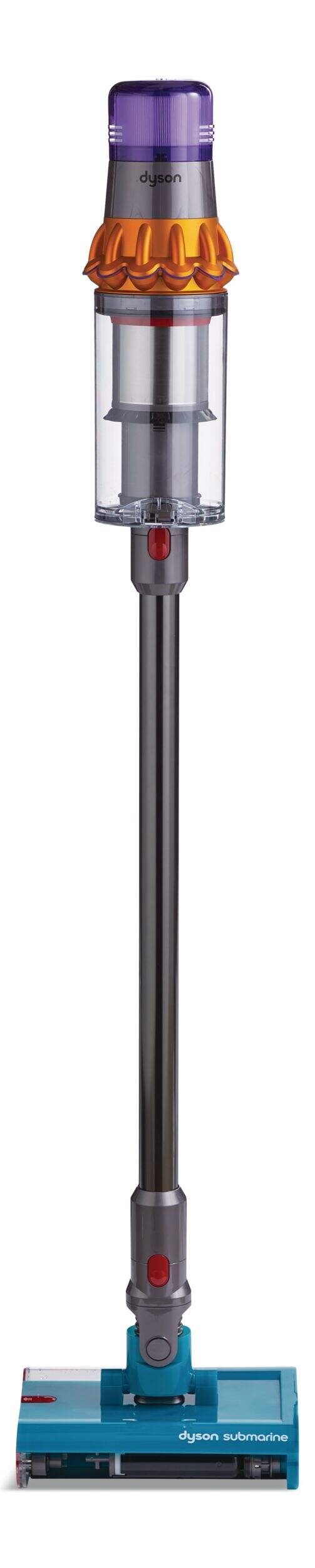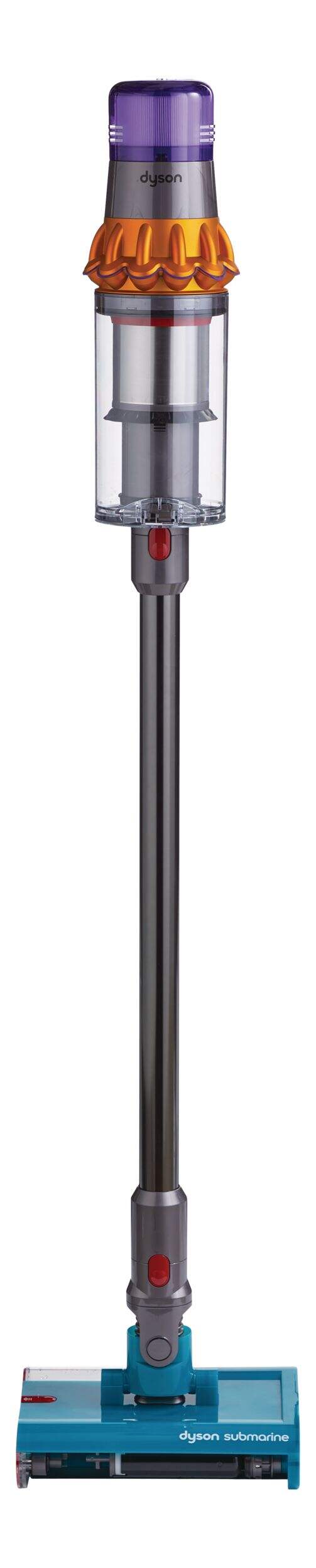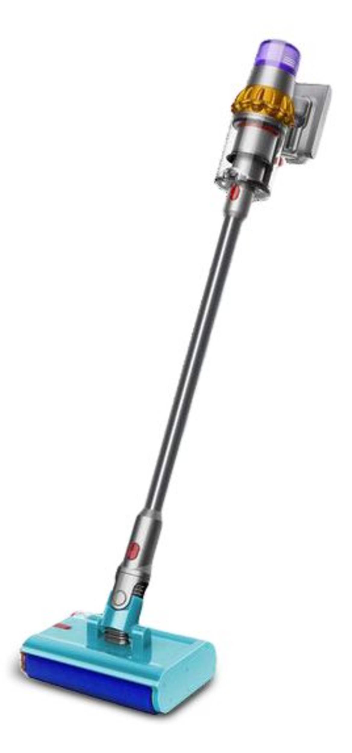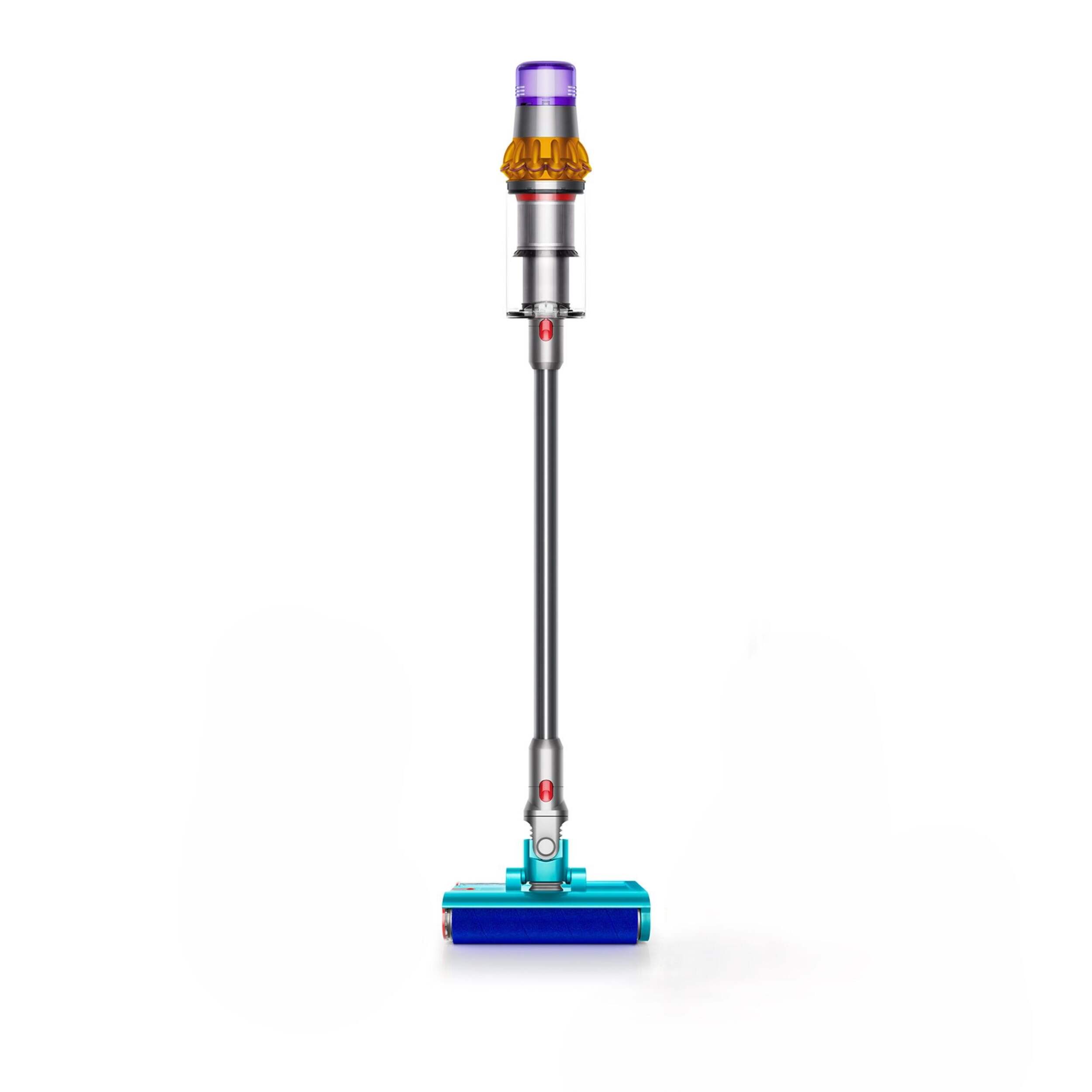 The Dyson Detect Vacuum now washes hard floors with ease. Using its new Submarine™ wet roller head, the V15s Detect Submarine is engineered to clean tile, stone, wood, ceramic, vinyl, linoleum, and laminate floors, removing spills and tough stains. Its motorized wet roller picks up liquids, debris and tough stains, which are continuously extracted from the roller with each rotation. The vacuum comes with a variety of attachments that make cleaning simple, with an ergonomic design for added mobility and convenience.