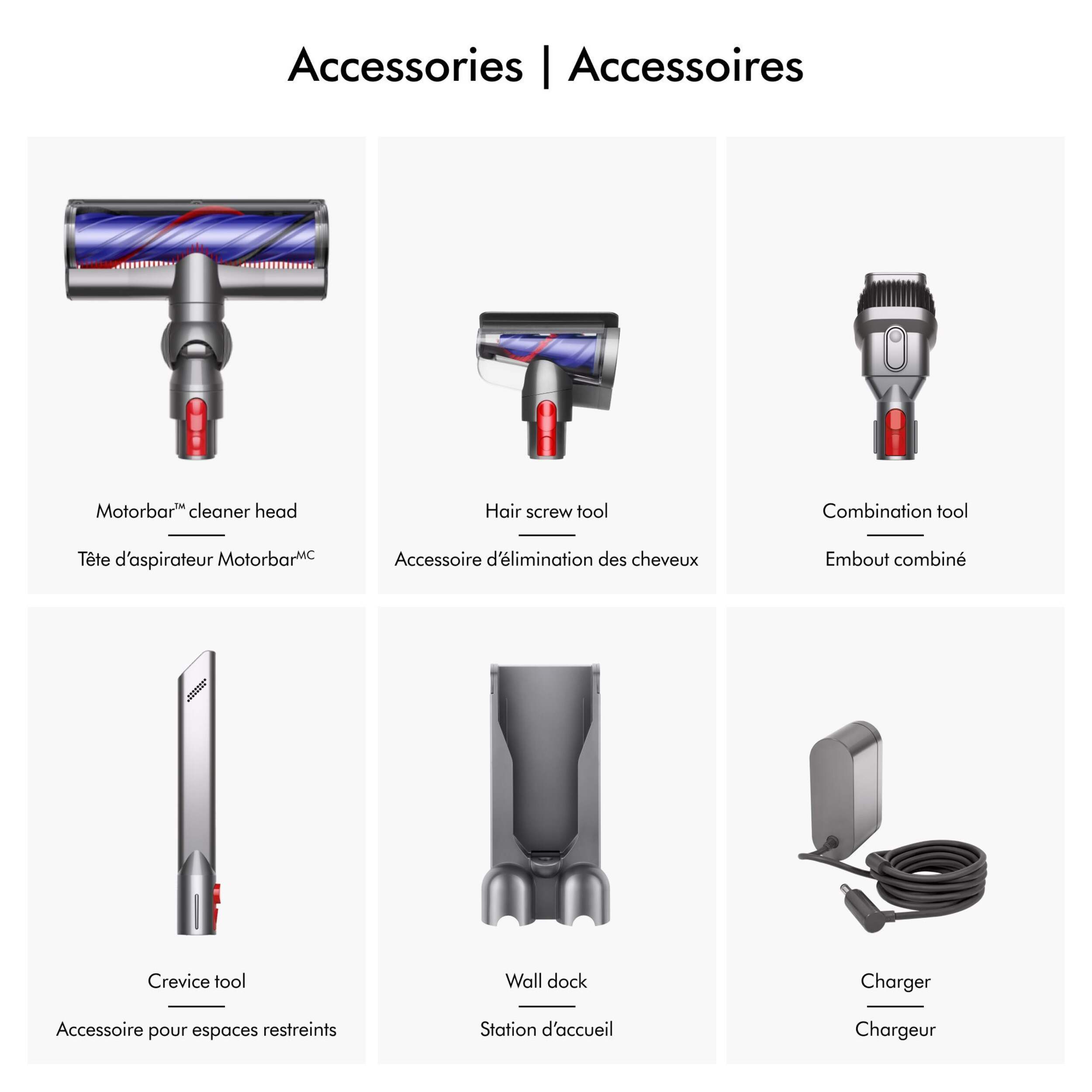 Comes with 4 Dyson-engineered accessories to clean up high, down low, and everywhere in between.