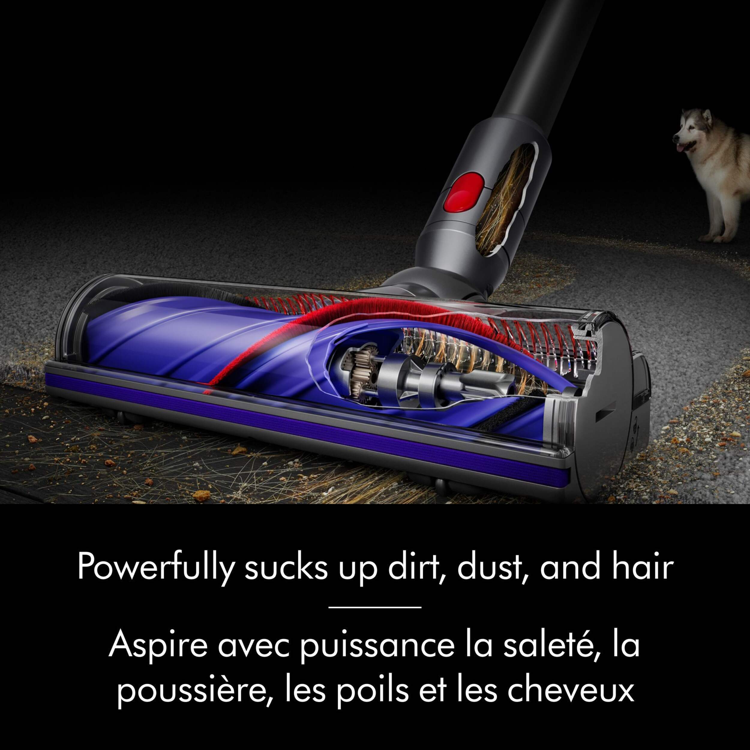 Motorbar™ cleaner head deep cleans all floor types, de-tangles wrapped long hair and pet hair as you clean