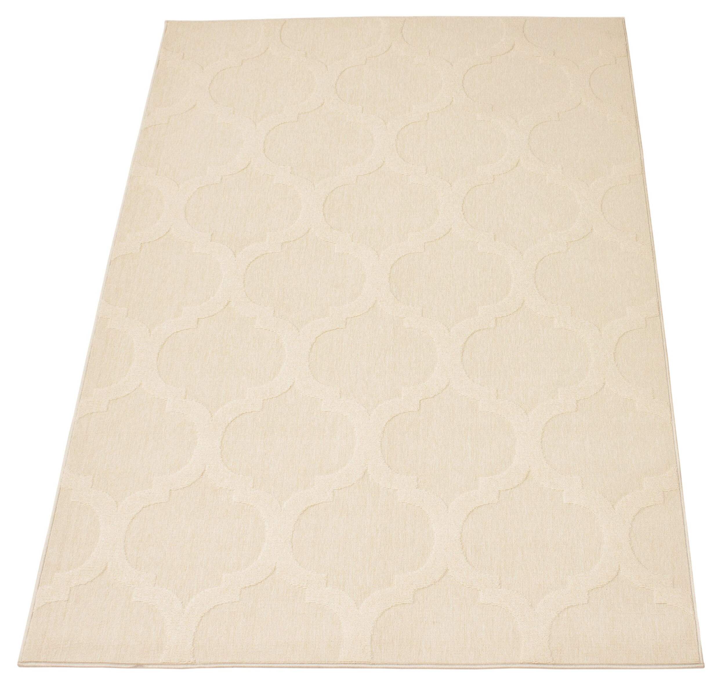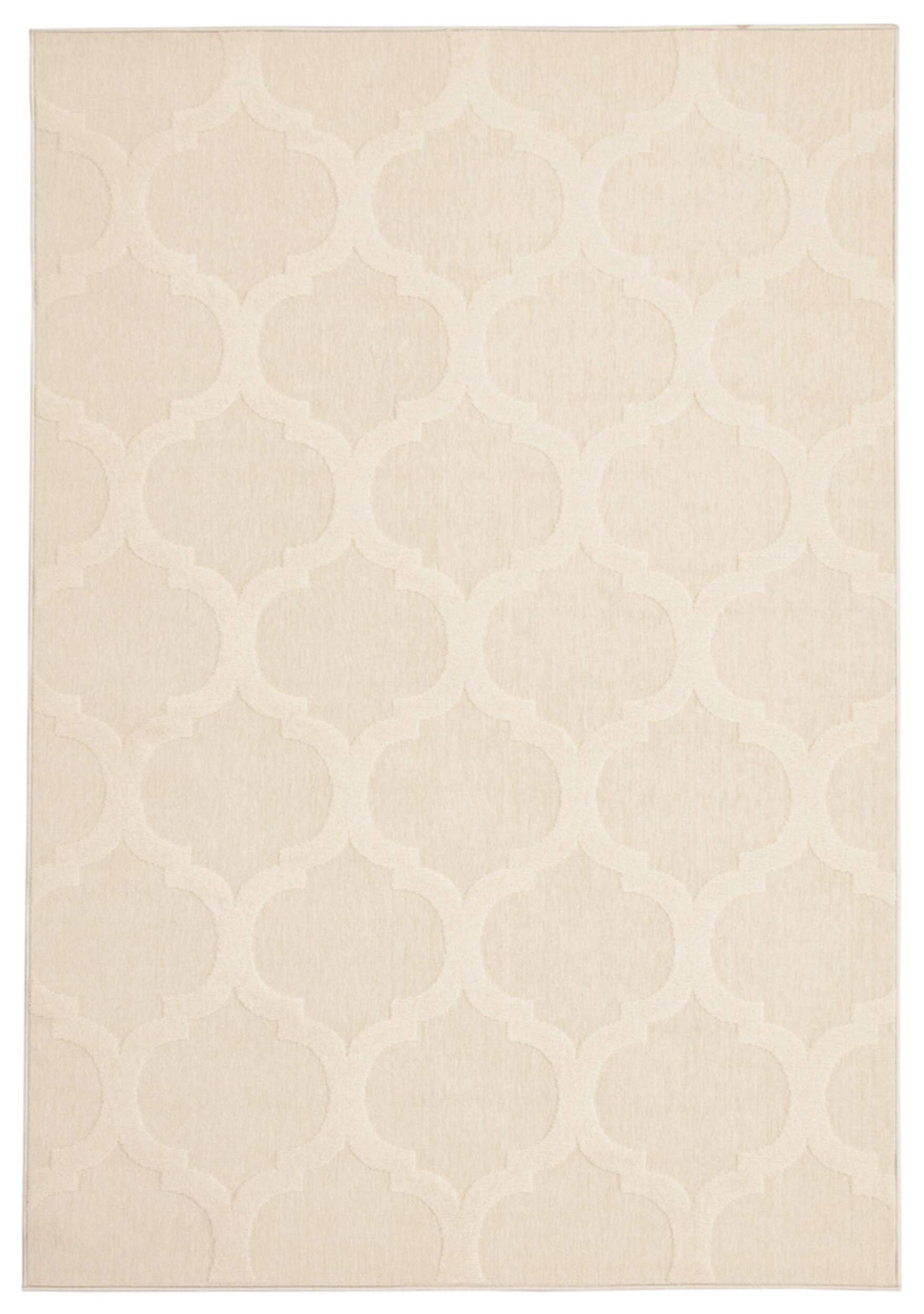 Crafted from soft yet durable 100% polypropylene, this contemporary indoor/outdoor area rug boasts a geometric pattern that will add visual interest to medium-to-high traffic spaces inside and outside your home. Whether in an entryway, living room or patio, the geometric shapes and neutral palette ensure this area rug will complement your existing decor for years. Perfect for year-round use, this patterned rug can withstand moisture, fading and wear from everyday use, making it ideal for any space.