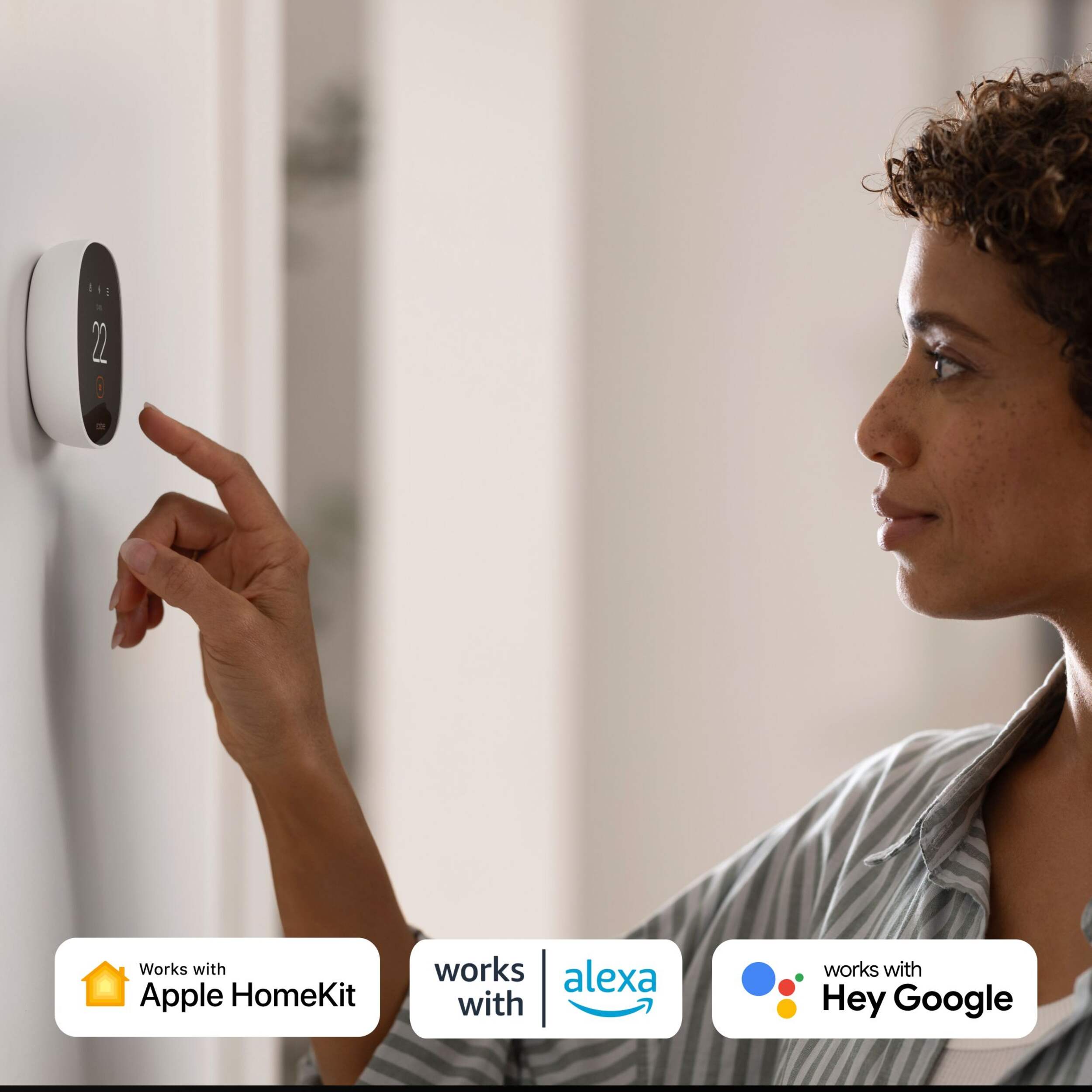 The Ecobee Smart Programmable Wi-Fi Thermostat Essential delivers easy temperature control for your home. Compatible with 85% of HVAC systems, this sleek white thermostat can be installed with minimal effort. ENERGY STAR certified, it automatically adjusts your home's heating and cooling schedule based on your routine. With an Ecobee thermostat, you can monitor energy usage and keep your home comfortable while optimizing efficiency at the very same time.