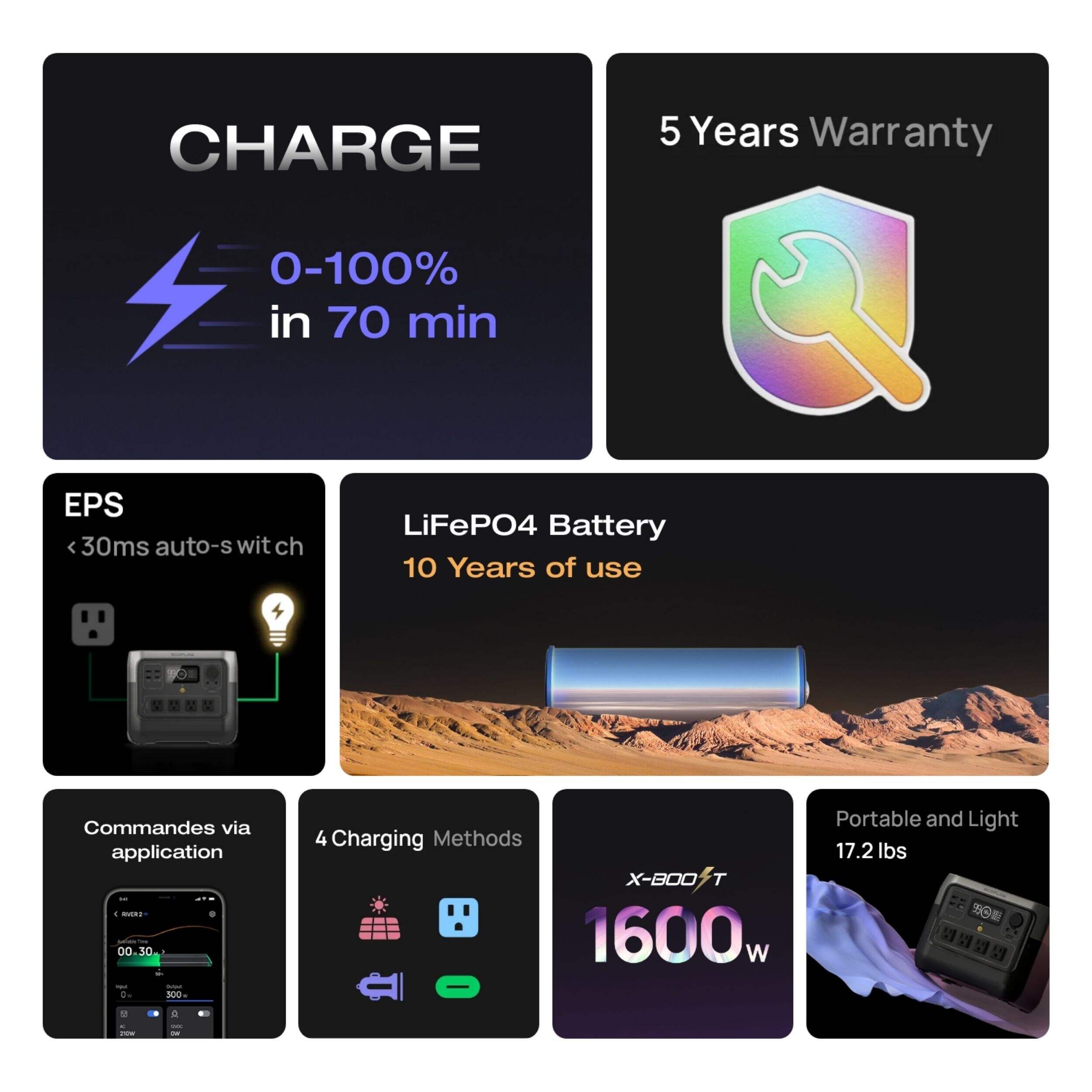 High-Performance X-Boost Mode boosts output to 1600W, powering 80% of home appliances with ease
