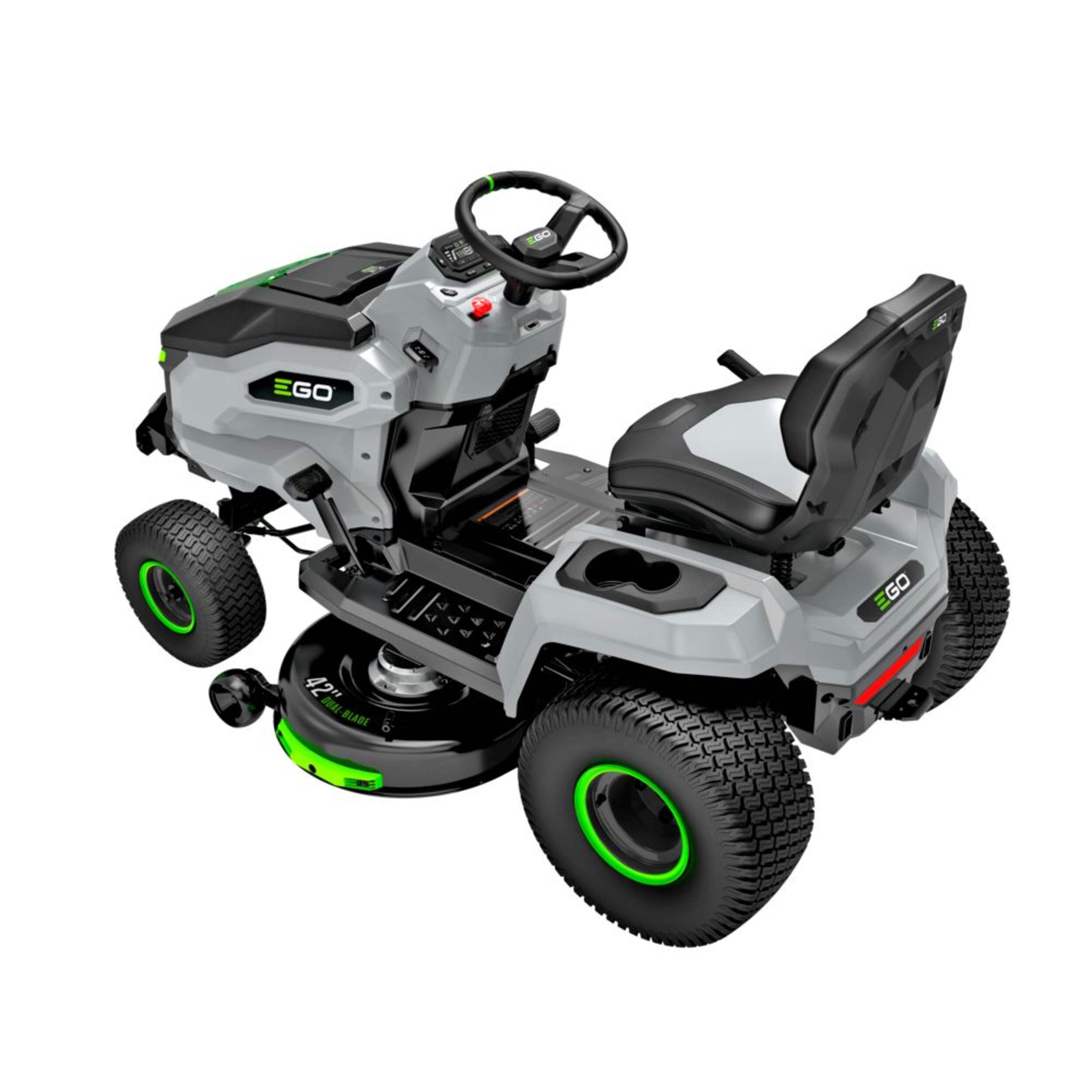 The EGO POWER+ 42” T6 Lawn Tractor is a revolutionary, eco-friendly alternative to traditional gas-powered riding mowers. This tractor features dual brushless motors and a belt-free design, reducing maintenance while providing enhanced durability and efficiency. The EGO POWER+ 42” T6 Lawn Tractor is designed to make your yard work easier, faster, and more enjoyable, all while being eco-friendly and efficient.