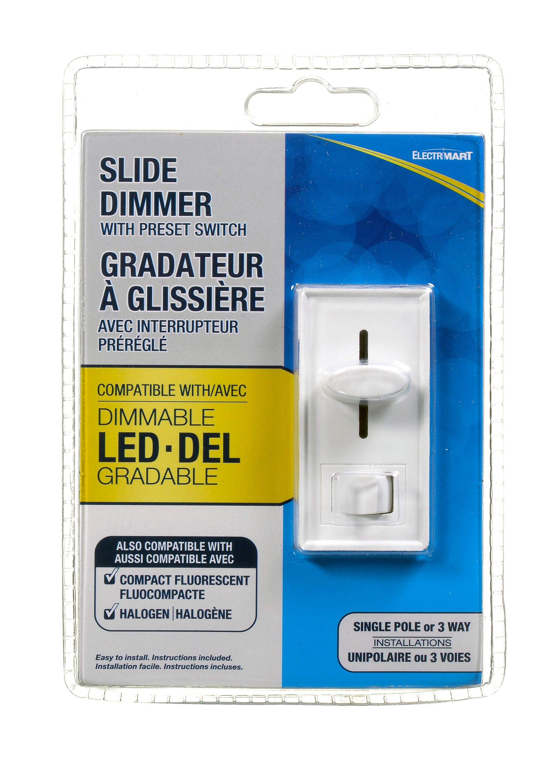 Experience superior control and durability with the Electrimart Single Pole/3-Way LED Slide Dimmer in White. Featuring a high impact-resistant, non-glossy, easy-to-clean thermoplastic body, this dimmer ensures attractive, long-lasting operation. Perfect for both residential and commercial applications, it offers smooth and precise dimming for your LED lights, enhancing the ambiance of any space.
