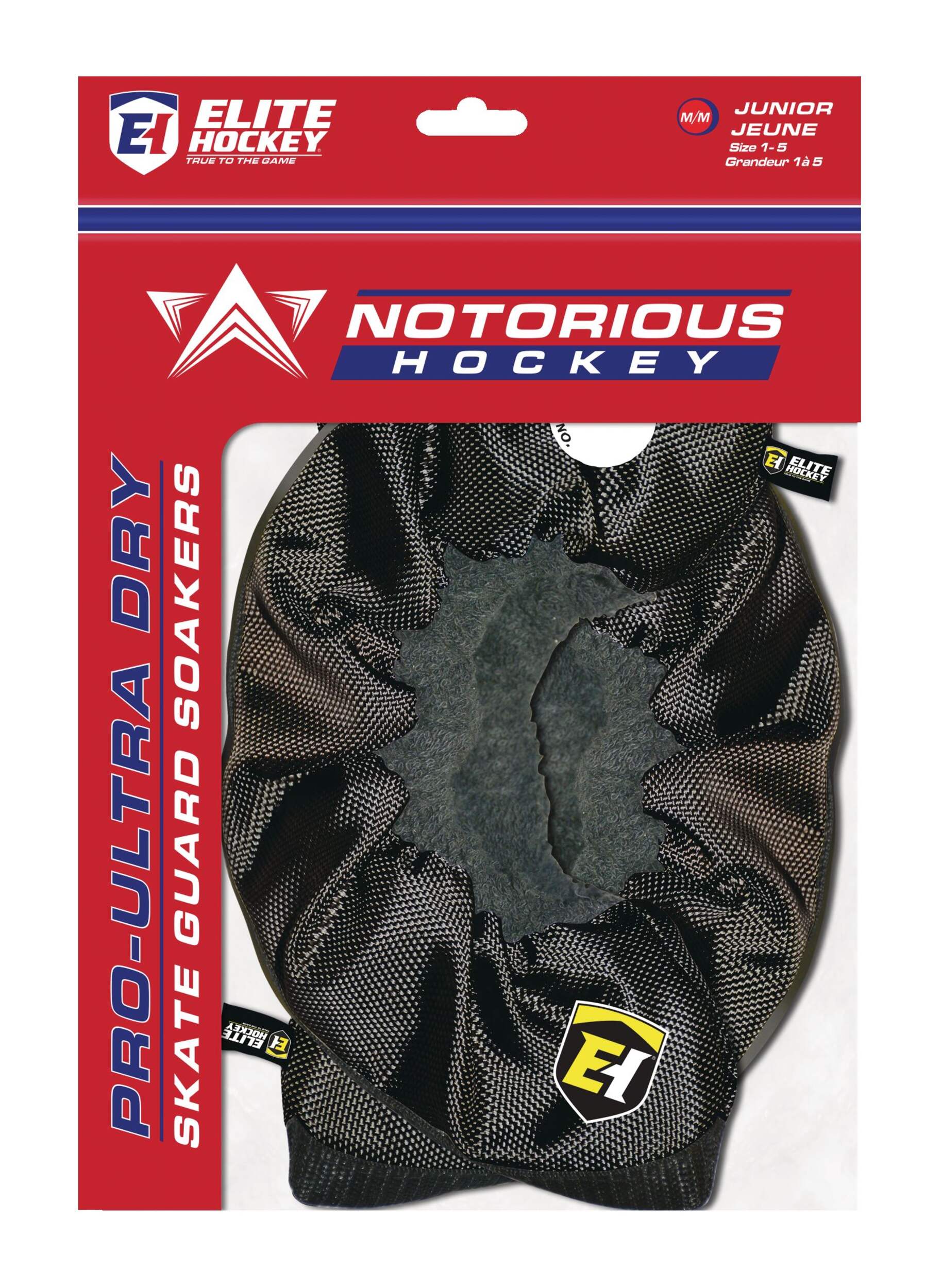 Specially designed to easily “slip” over the sharp edges of your skate blades, the ELITE HOCKEY® PRO-ULTRA DRY SOAKER provide the ultimate protection from nicks and cuts to both your hockey equipment and bag. Our soakers feature an inner terry lining that absorbs excess water from your skate blades to help prevent them from rusting. The reinforced integrated inner and outer polypropylene web band on the bottom prevents skate blades from chipping and prolongs sharpening.