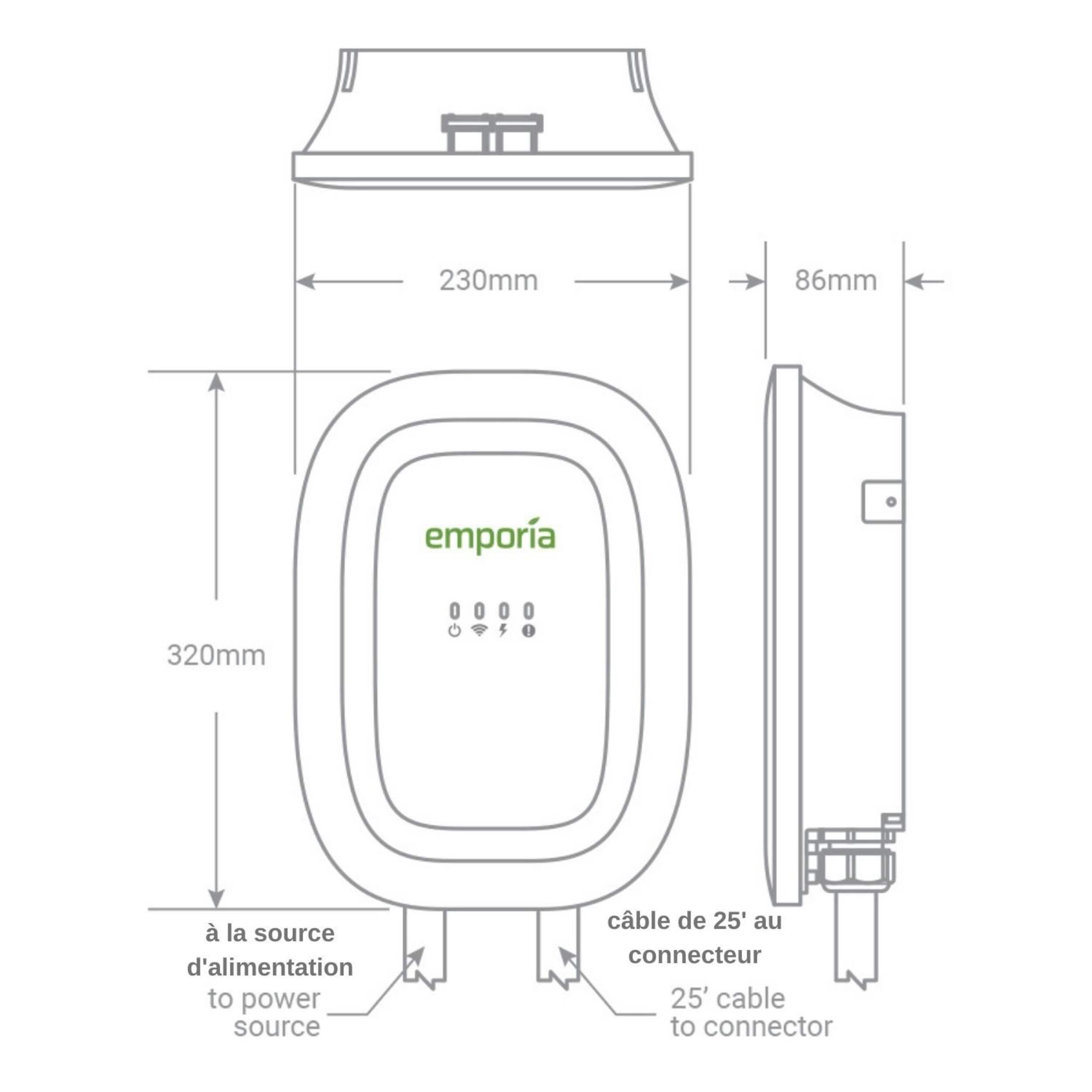 Meet the powerful game changer in electric vehicle charging. The Emporia Level 2 electric vehicle charger is consistently voted one of the best EV Chargers on the market. With its 24 cable, a CCS / J1772 connector, it can easily reach and charge any EV up to 48 amps with hardwired configuration or up to 40 Amps with NEMA 14-50 configuration. UL AND ENERGY STAR CERTIFIED LEVEL 2 EV CHARGER. DEFAULT CHARGE RATE is 40A for NEMA 14-50 and 48A for Hardwired. WiFi Internet connection is required to raise or lower charge rate. Pair with an Emporia Vue Smart Home Energy Monitor to automatically charge only with excess solar power and curb charging during peak demand. NEMA 14-50 - 11.5kW (240V/48A) / 9.6kW (240V/40A) / 10kW (208V/48A) / 8.3kW (208V/40A) (Preconfigured for NEMA Type 14-50P with 22" cable compliant with 2017 NEC Section 625.17(A)(3) for up to 40A or convert to Hardwired for up to 48A). Requires a dual-pole, dedicated breaker at 60A+ for a 48A charge or 50A+ for a 40A charge. A professional electrician is recommended for hardwiring or installing a NEMA Plug.(adapter required for Tesla EVs). UL LISTED WITH YOUR SAFETY IN MIND. Manufactured to meet the safety criteria defined by these industry standards: NEC 625, SAE J1772, UL 817, UL 991, UL 2231, UL 2251, and UL 2594. INSTALL INDOORS & OUTDOORS. Your charger will be safe from the elements with a watertight NEMA Type 4 enclosure. Check with your local company to see if there are incentives & rebates in your area. REAL-TIME ENERGY DATA: REQUIRES 2.4 GHz WIFI WITH AN INTERNET CONNECTION to monitor energy use and charging sessions with iPhone / Android / Web Browser app. Schedule charging with the app. Protected by a 3-Year warranty.