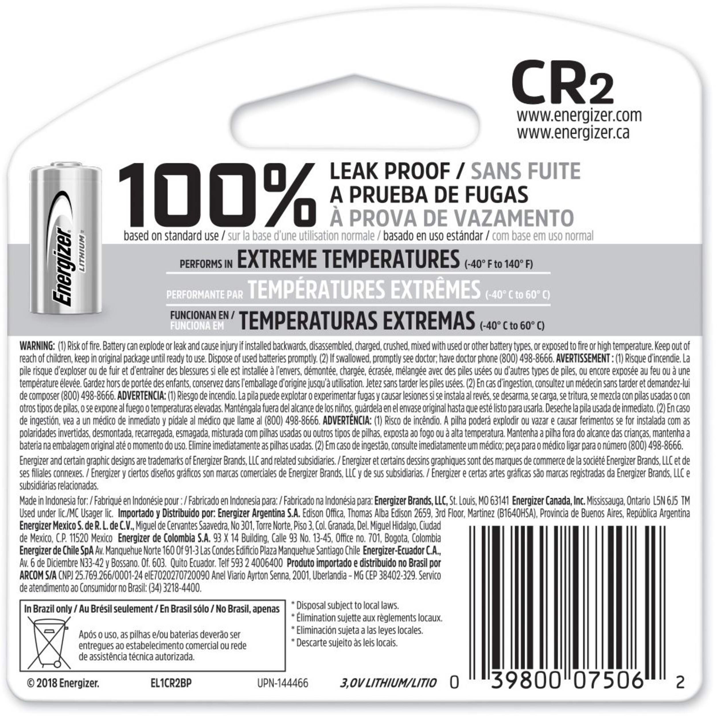 The Energizer CR2 3V Lithium Photo Battery offers reliable, long-lasting power for high-drain devices like digital cameras, flashlights, and electronic sensors. Designed with lithium chemistry, it ensures stable performance even in extreme temperatures. This battery features a shelf life of up to 10 years, providing dependable power whenever you need it. Ideal for various electronics, it offers a perfect balance of power and longevity.