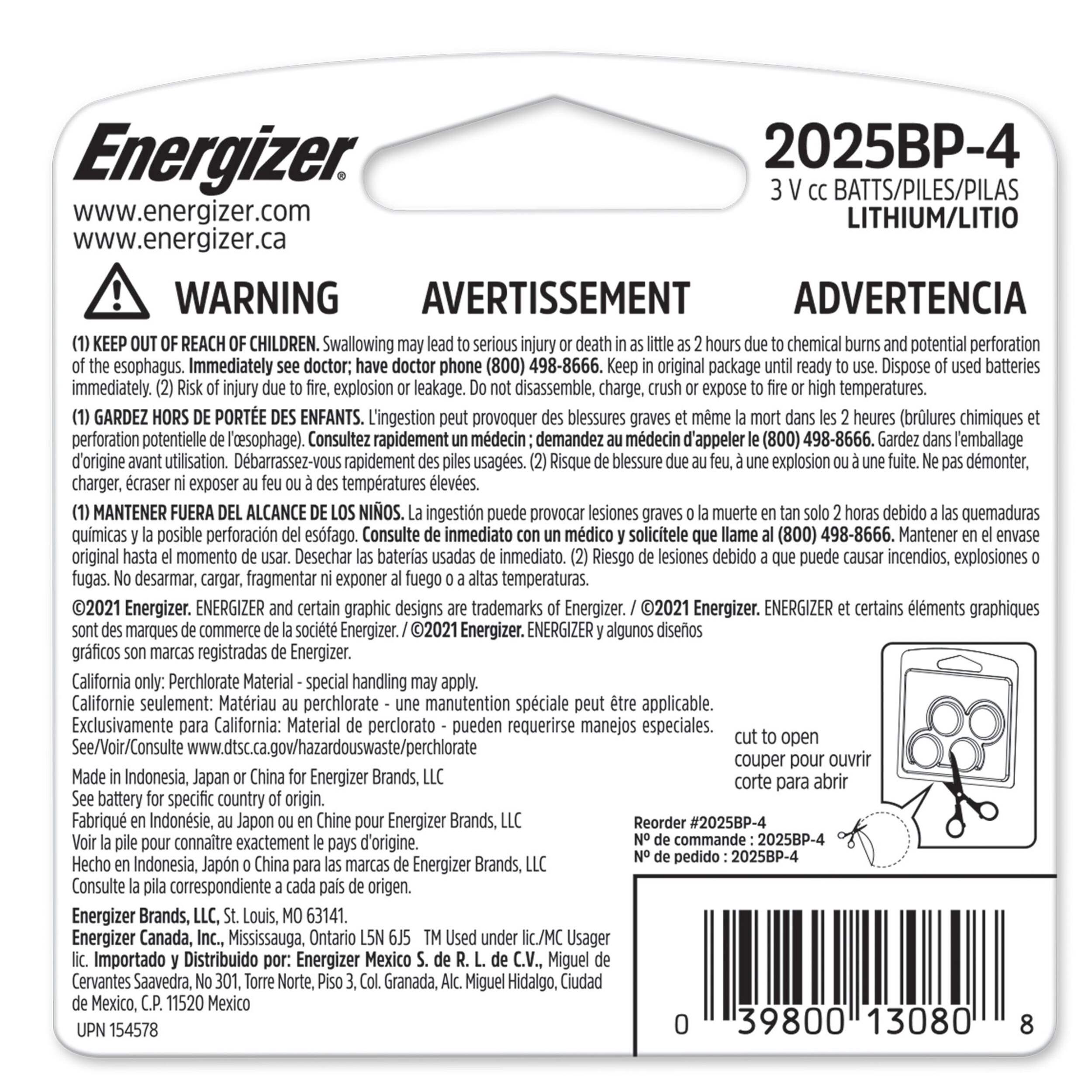 Energizer 2025 Lithium Coin Batteries provide reliable, long lasting power for your important devices. These lithium 2025 batteries perform in extreme temperatures ranging from -22 F to 140 F for dependable power, even in the toughest conditions. Reach for these Energizer batteries when you need calculator batteries, key fob batteries, or batteries for remotes. Energizer coin batteries are also an ideal power source for your keyless entry system, toys and games. Lasting up to 10 years in storage, these lithium batteries provide reliable power when you need them. Energizer packages its lithium coin batteries in child-resistant packaging, designed to help keep kids safe from ingesting them.