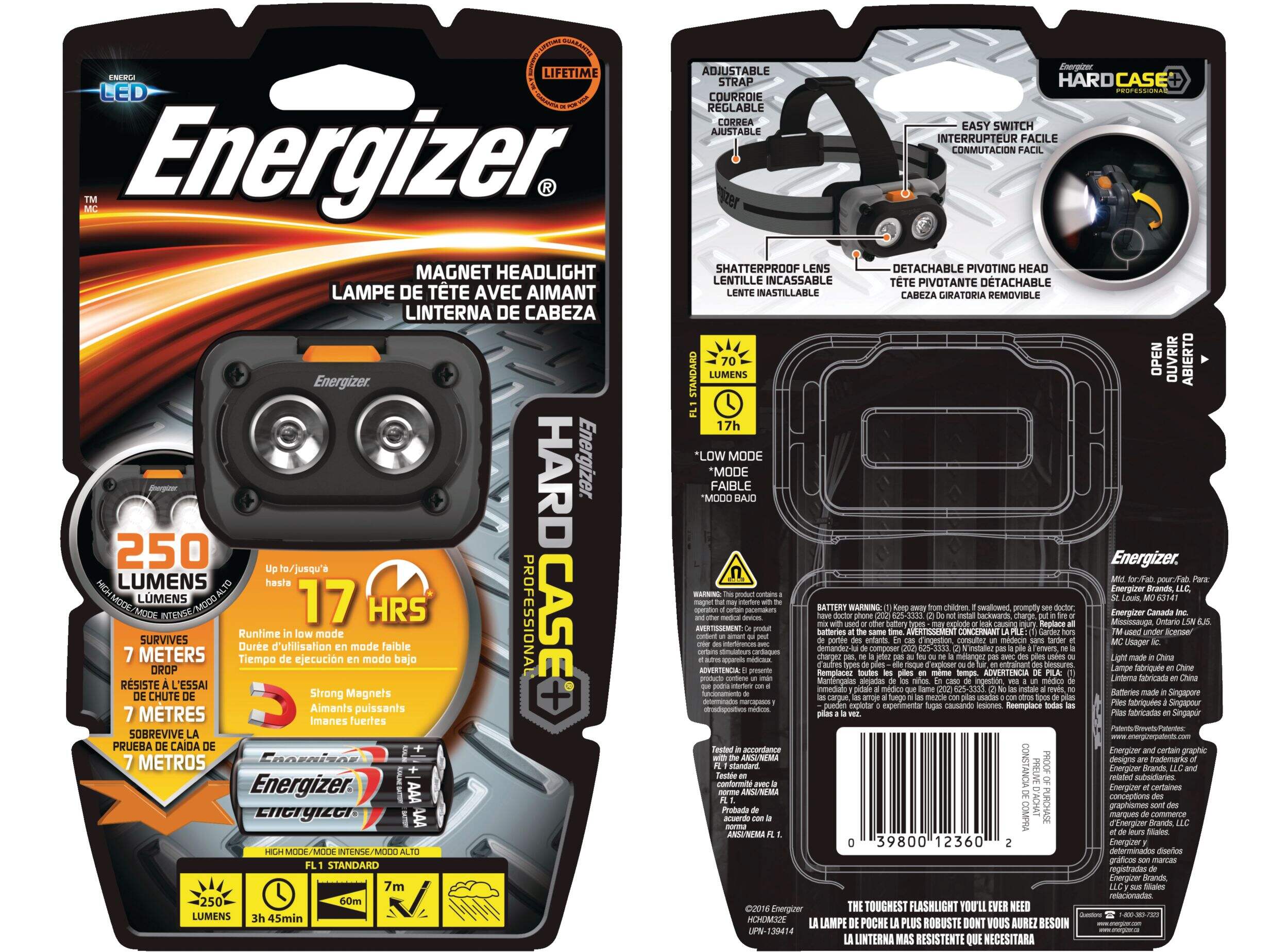 Energizer 250 Lumen Hardcase Magnet Headlight features tool-quality construction and advanced LED technology