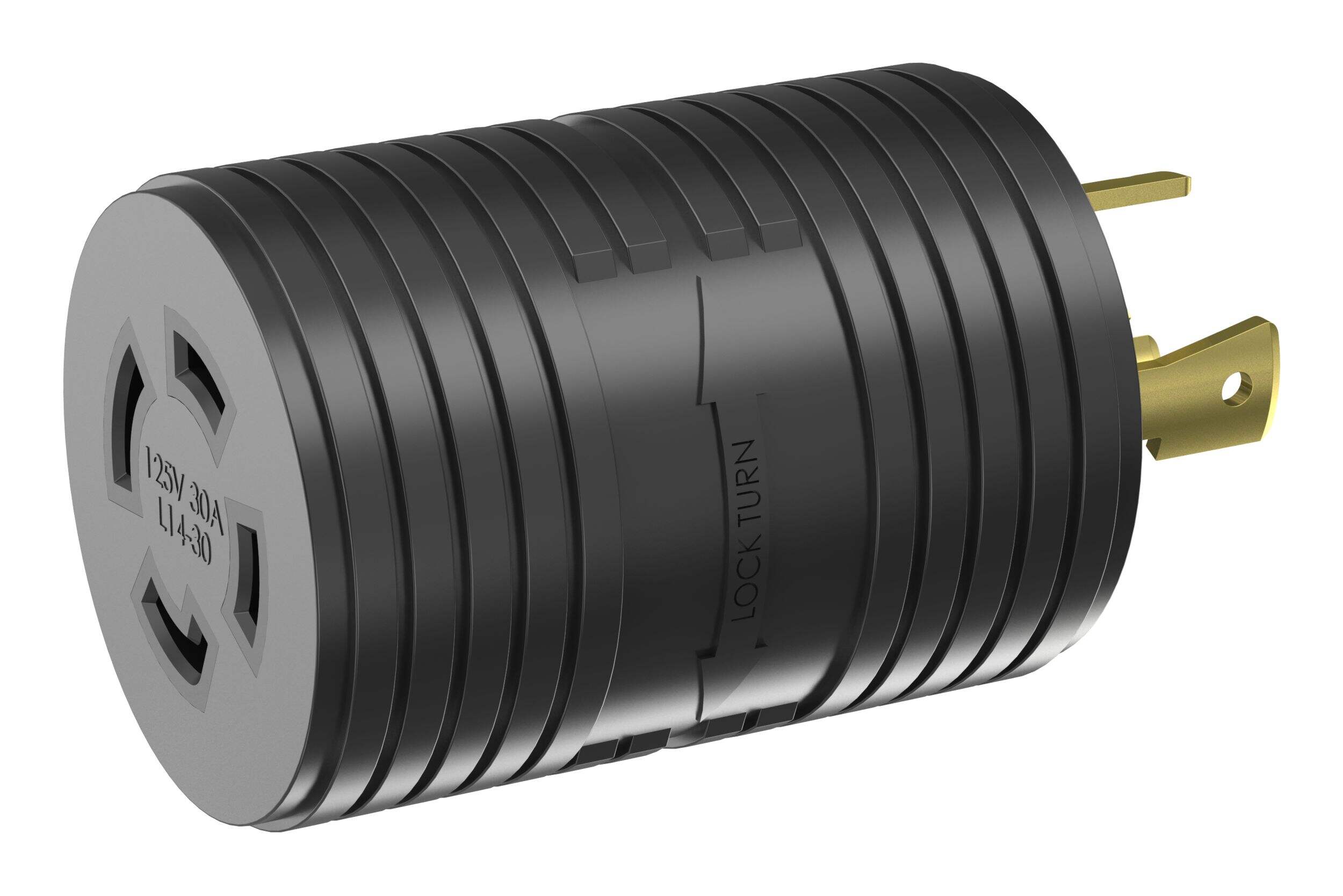 Energizer 30 Amp 3-Prong Twistlock to 30 Amp 4-Prong Twistlock Compact Adaptor Plug 125V is a heavy-duty compact adapter