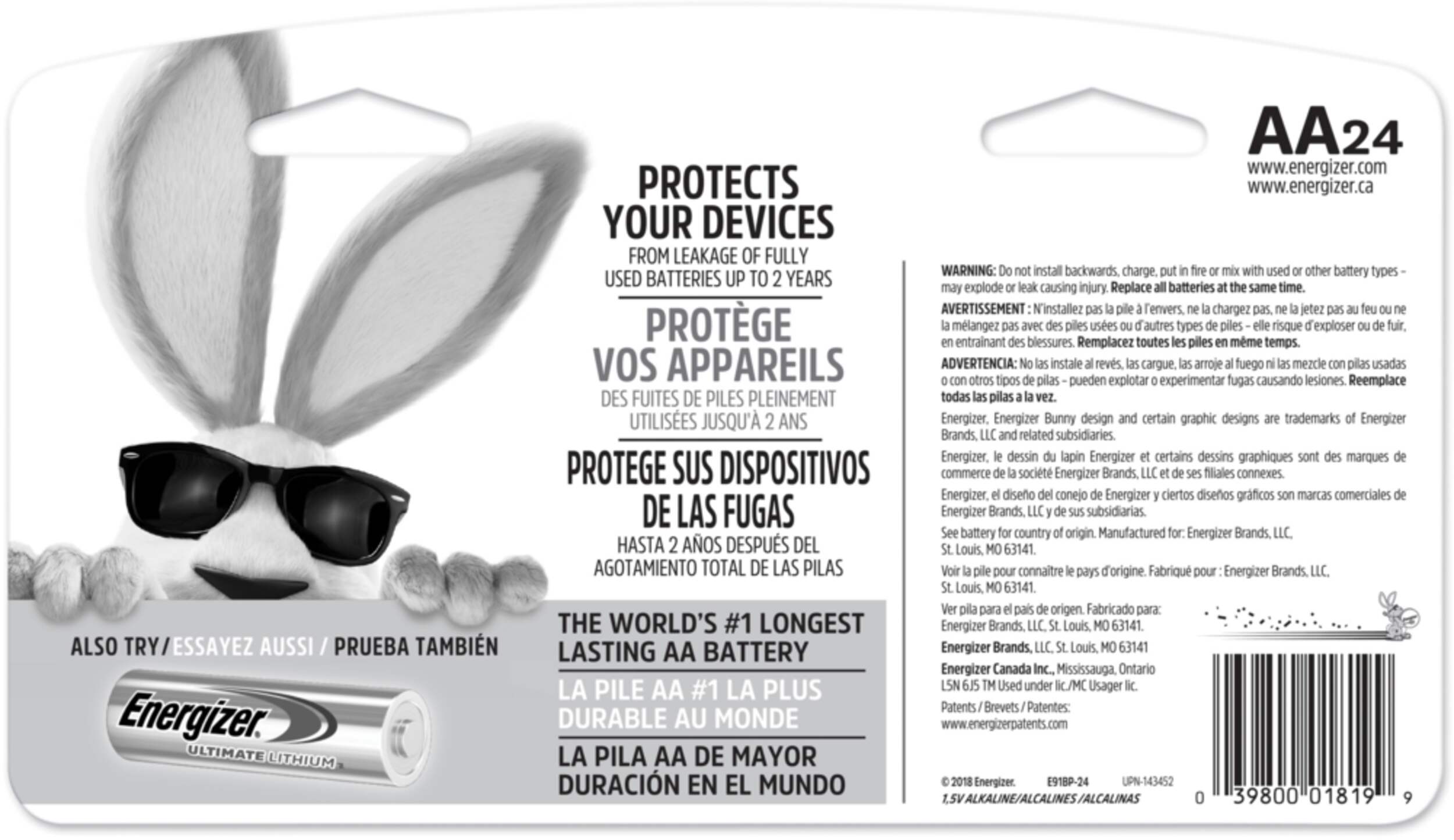 Power the devices you love with Energizer MAX Alkaline AA Batteries. These Energizer batteries fuel the technology that helps you to live, work, and play. Whether you need remote batteries, clock batteries, or backup batteries for your child's favourite toys and games, Energizer has you covered. With a shelf life of up to 10 years in storage, these long-lasting batteries will be ready to power your devices when you need them the most.