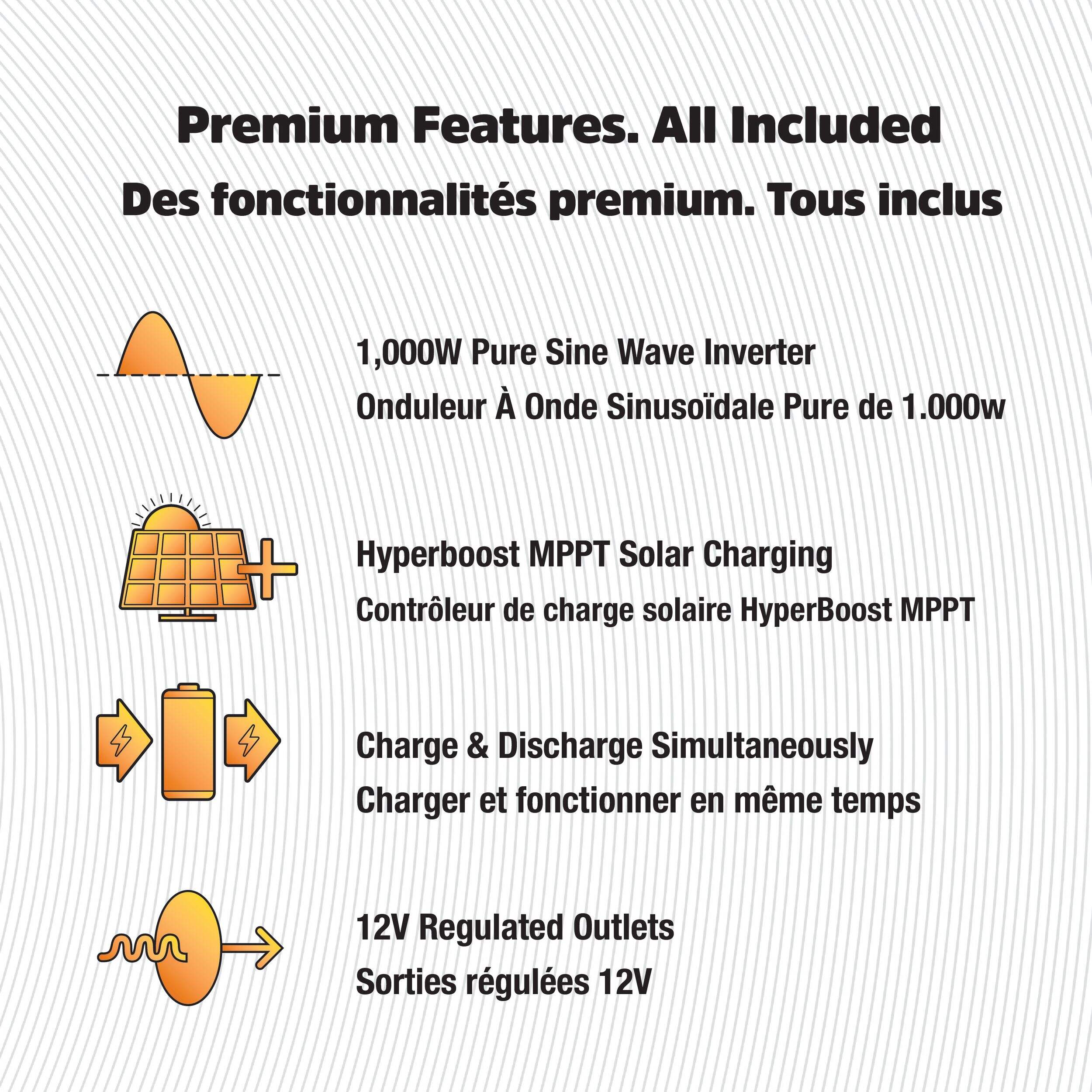 Energizer Arc12 1000Wh Lithium-Ion Portable Power Station features 1000 W of pure sine wave AC power shared over 3 outlets