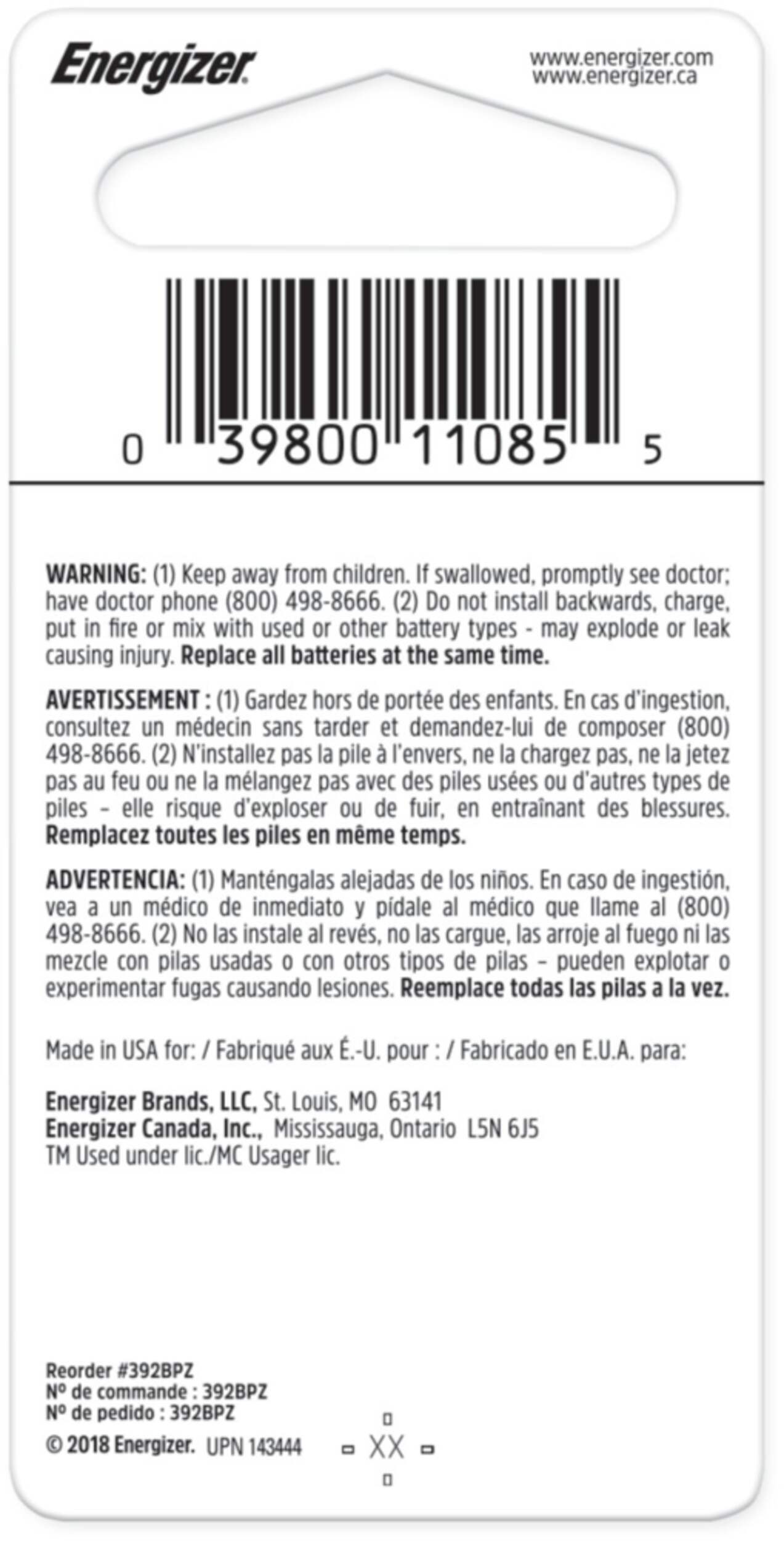 • Energizer 392 Silver Oxide Button Cell 1.5-Volt Battery delivers long-lasting, dependable power to your button-battery-operated devices, like medical devices, calculators, toys, and watches