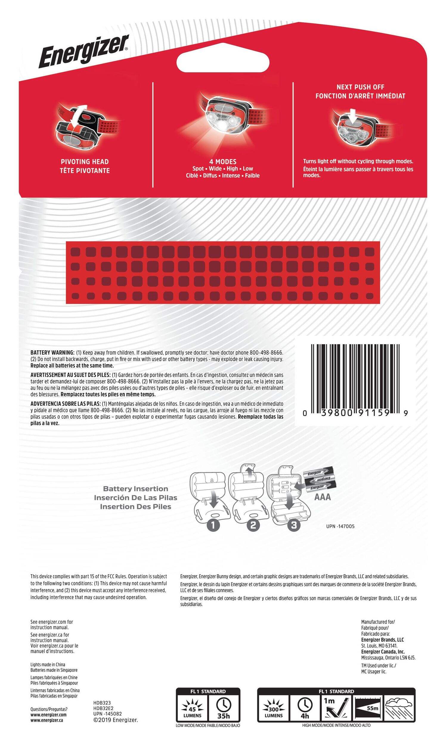 Works with 3 Energizer MAX AAA batteries (batteries included)