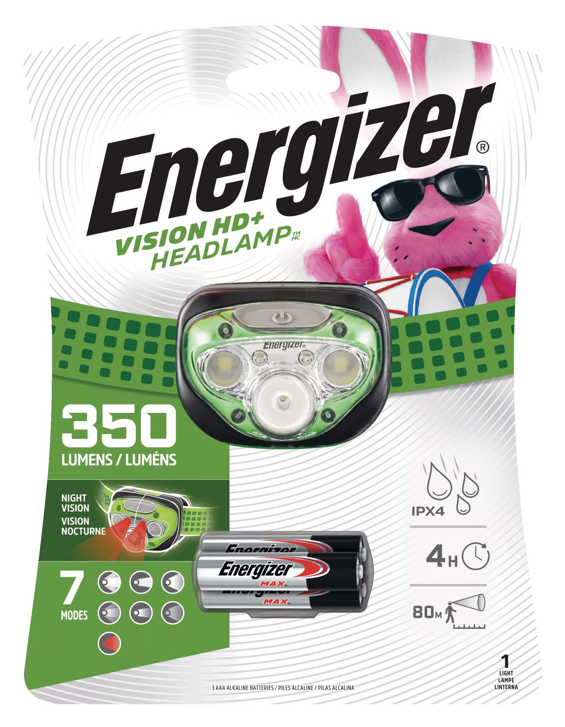 The Energizer Vision HD+ LED Headlamp delivers dependable lighting wherever your work or adventures take you. This hands-free LED headlamp offers a powerful 350 lumens on high mode, with a 70-meter beam distance. It features additional settings like dimming, spot, and red night vision for versatile use. Durable, water-resistant, and impact-resistant, this headlamp pivots to direct light where it’s needed most, ensuring reliability in any situation.