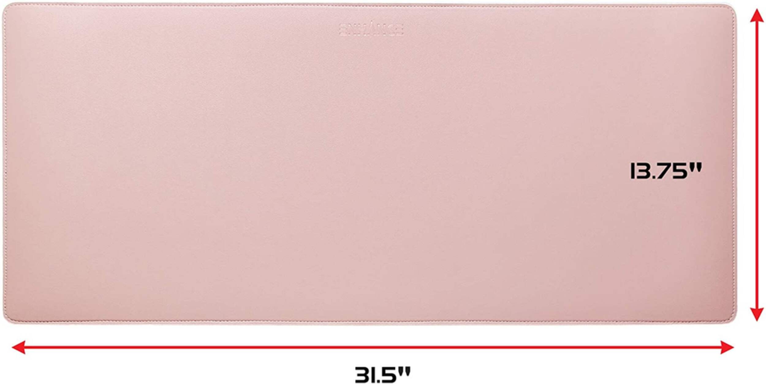 Our sizable writing desk pad is designed to protect glass or wood desks from damage caused by pens or metal accessories scraping the surface. A durable PU leather covering atop substantial cushioning offers comfort for hands and wrists during typing or writing. Measuring 31.5 by 13.75 by 0.16 inches, the expansive size accommodates a keyboard, mouse, journal, calendar, desk organizer and other desk accessories. The water and stain resistant PU Leather surface is effortlessly cleaned with a moist cloth. Perfect for a compact or large desk, this pad functions as a desk protector whilst improving the aesthetic of your workspace. Choose from black, blue or pink. The laptop pad nicely places office desk accessories and organizers, helping keep your desk tidy. The rubber grip along the bottom keeps the mat stable during typing, writing, drawing and even gaming. The ideal desk mats atop desks, mice pads for computers and great office decor for women. This desk blotter is easily cleaned with water.