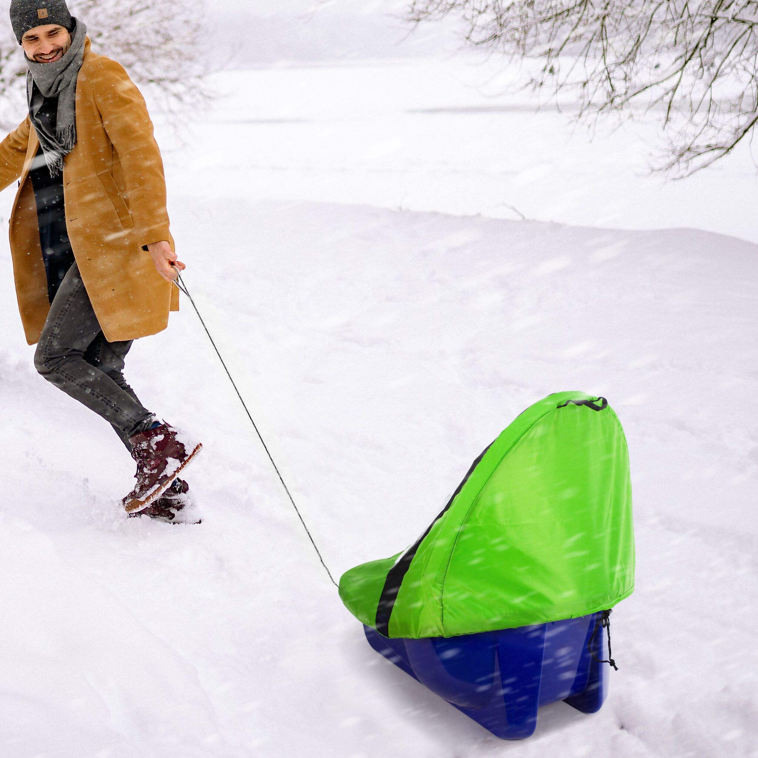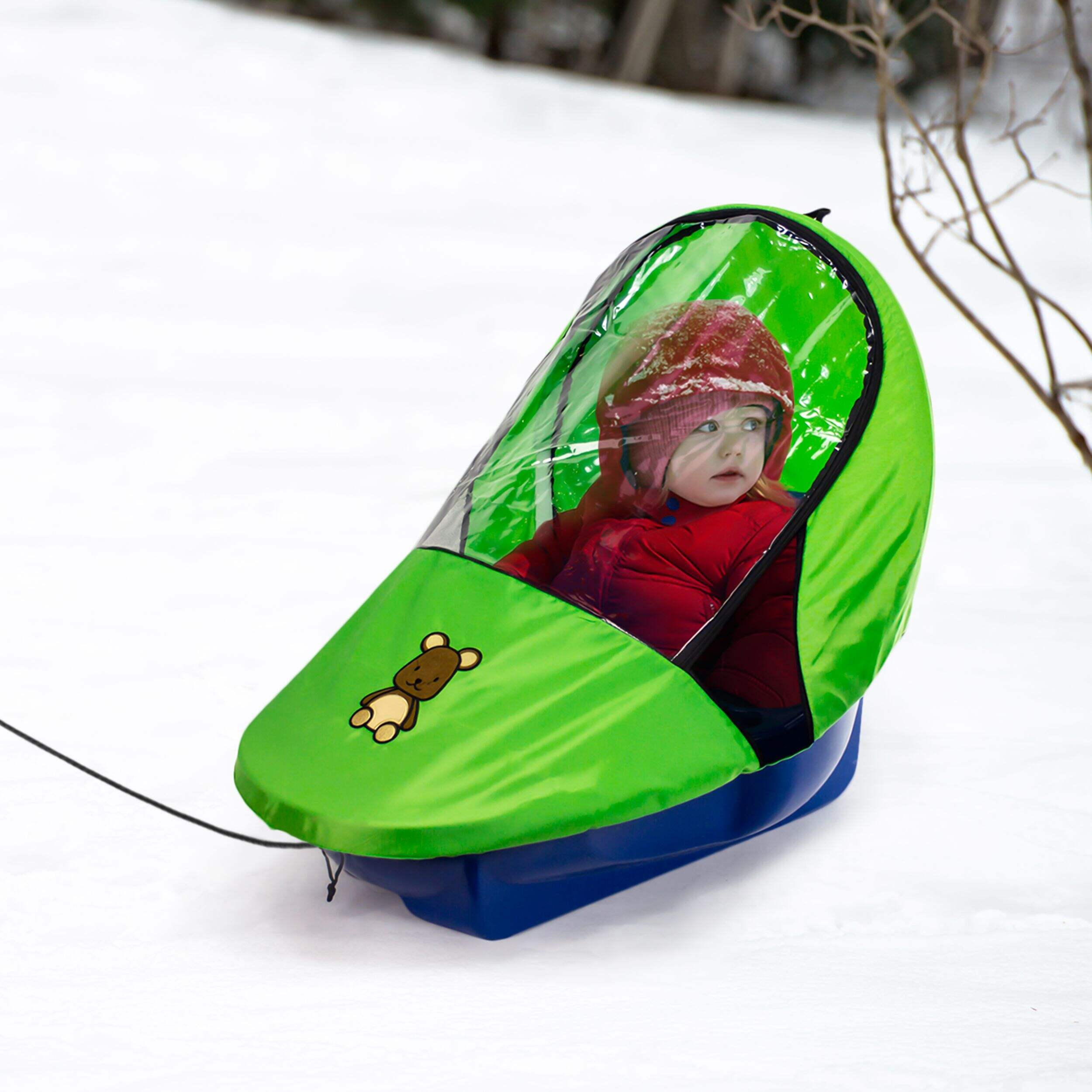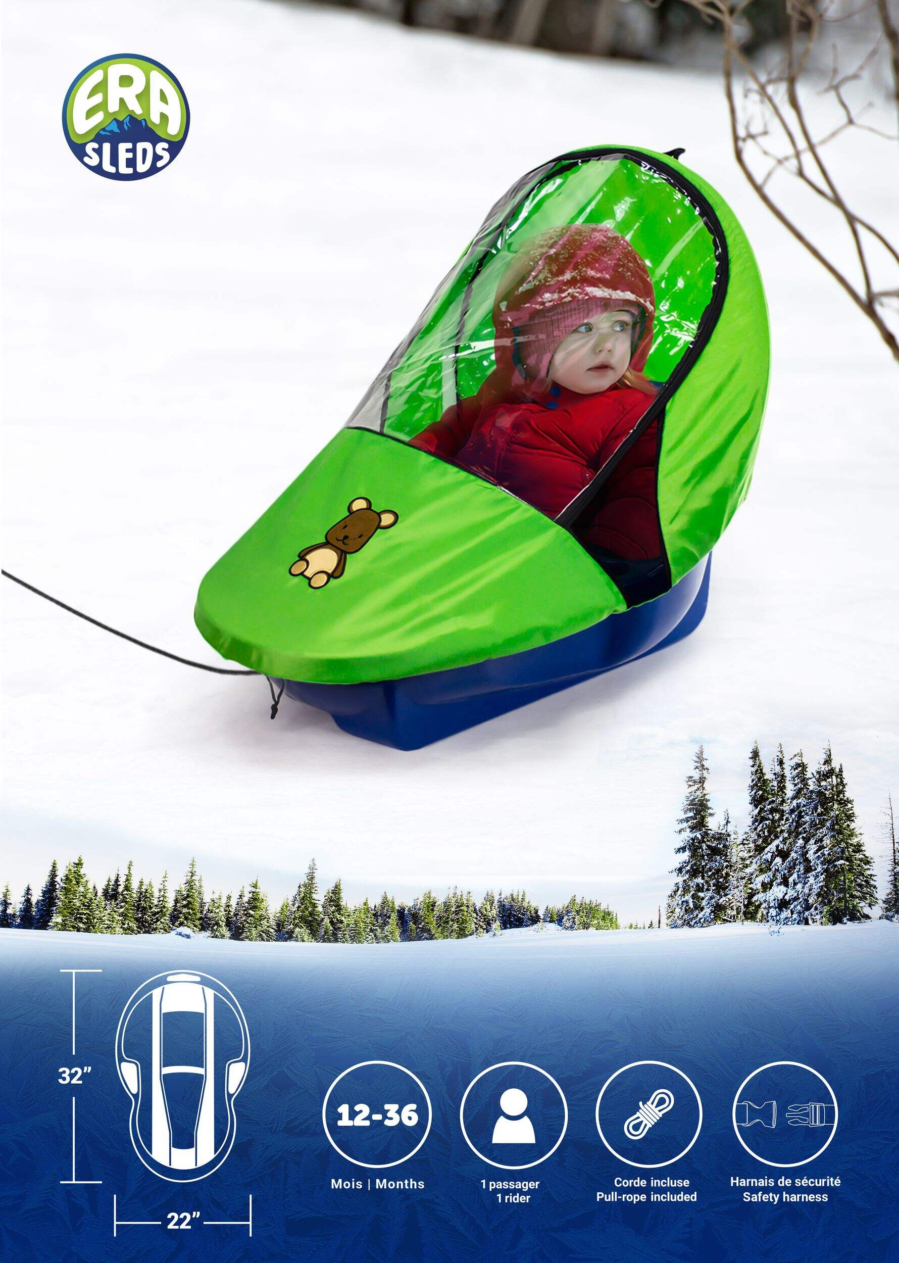 The ERA Peanut Baby & Toddler Winter Snow Sled/Toboggan provides cozy and safe snow fun for your little one. This toddler sled comes with a wide design that offers extra space for warm clothing. The adjustable seat grows with your child, and the tow rope ensures easy pulling. Perfect for children ages 12 to 36 months, this winter toboggan is built to withstand snowy adventures for years, holding up to 50 lbs of weight.