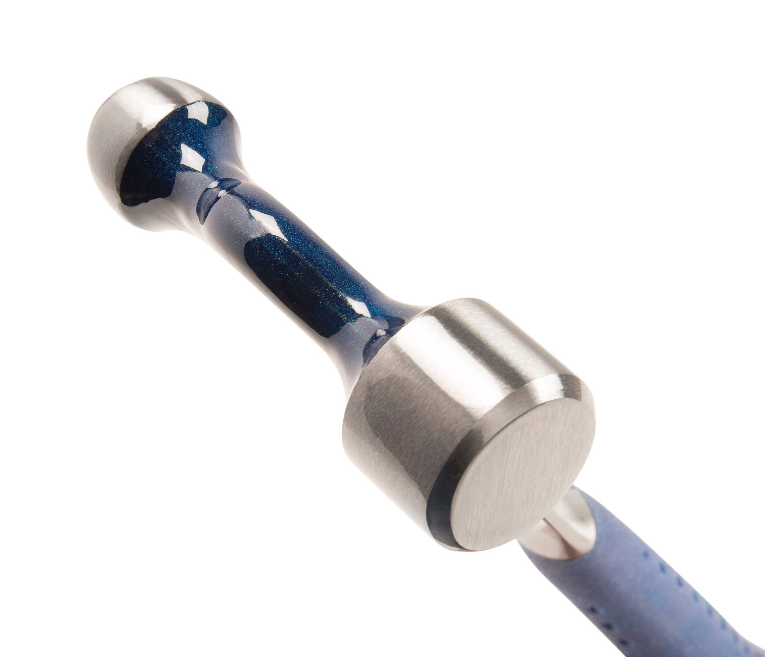 Head and handle are forged in one piece and have an attractive blue UV coating, with a fully polished face and peen