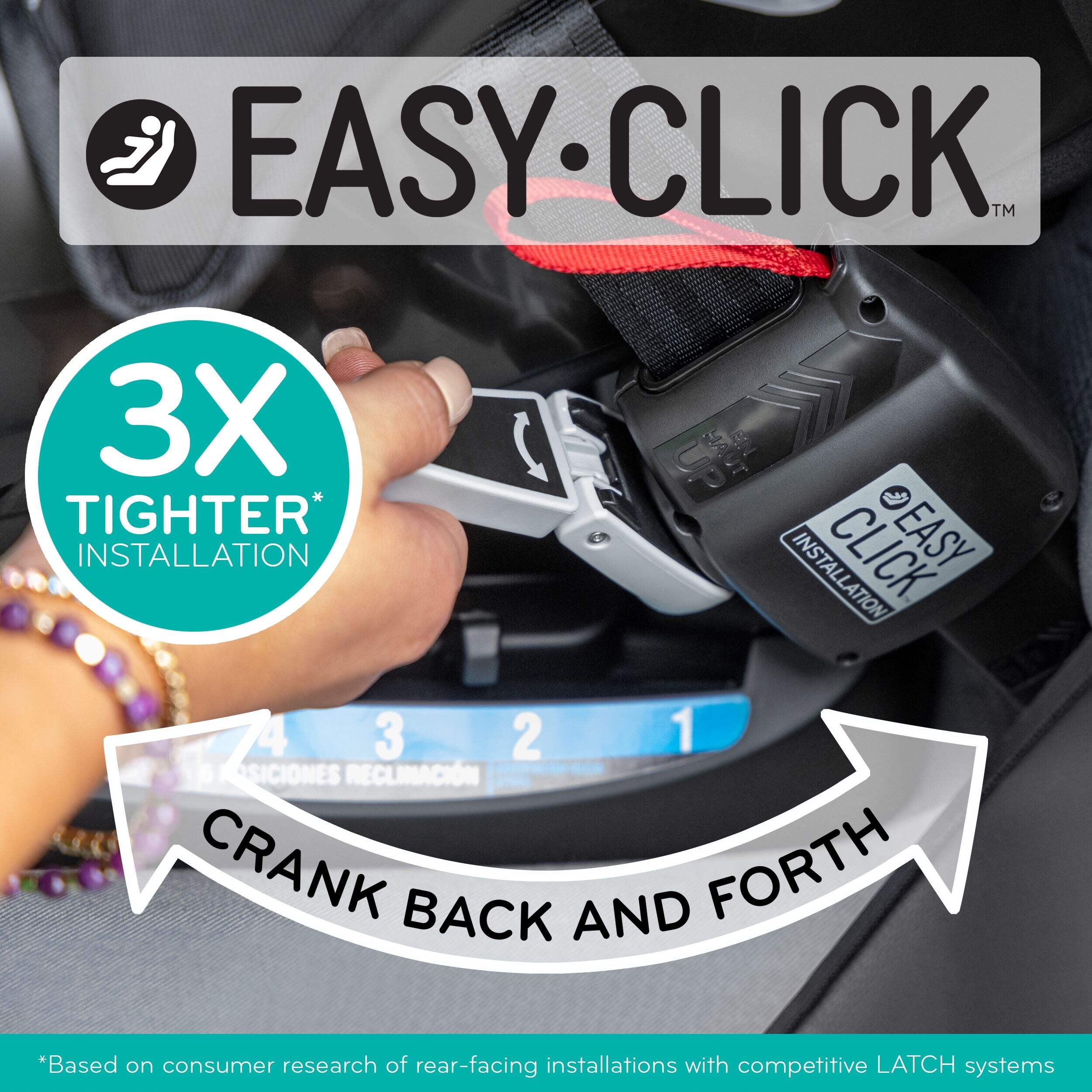Innovative EasyClick™ LATCH system easily ratchets to achieve a 3X tighter, rock-solid installation versus competition that can be correctly secured in seconds