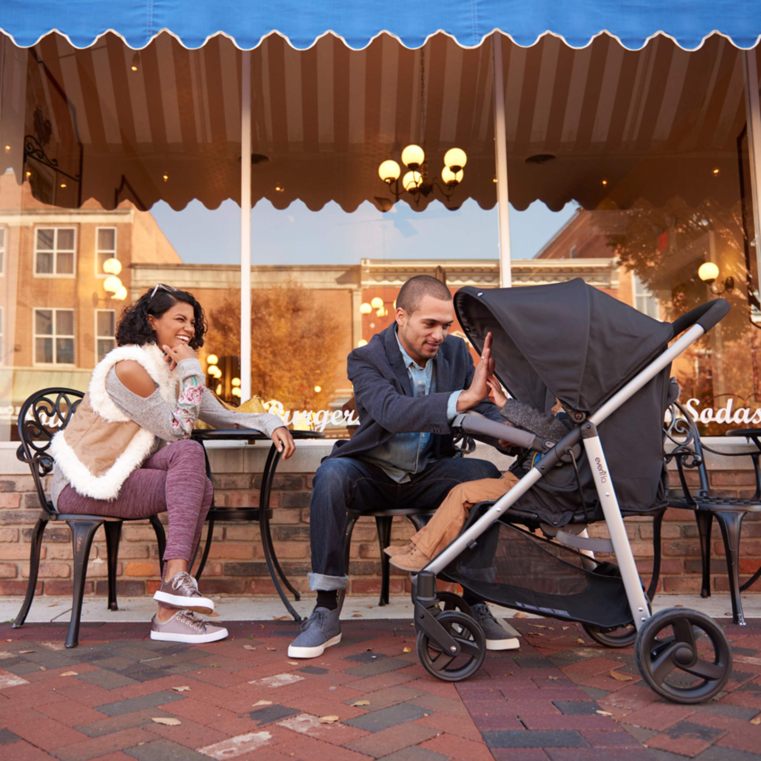 Evenflo FlipSide Travel System offers dual modes where parents can keep an eye on their baby in carriage mode, parent-facing OR flip the seat to toddler, forward-facing mode, canopy flips too