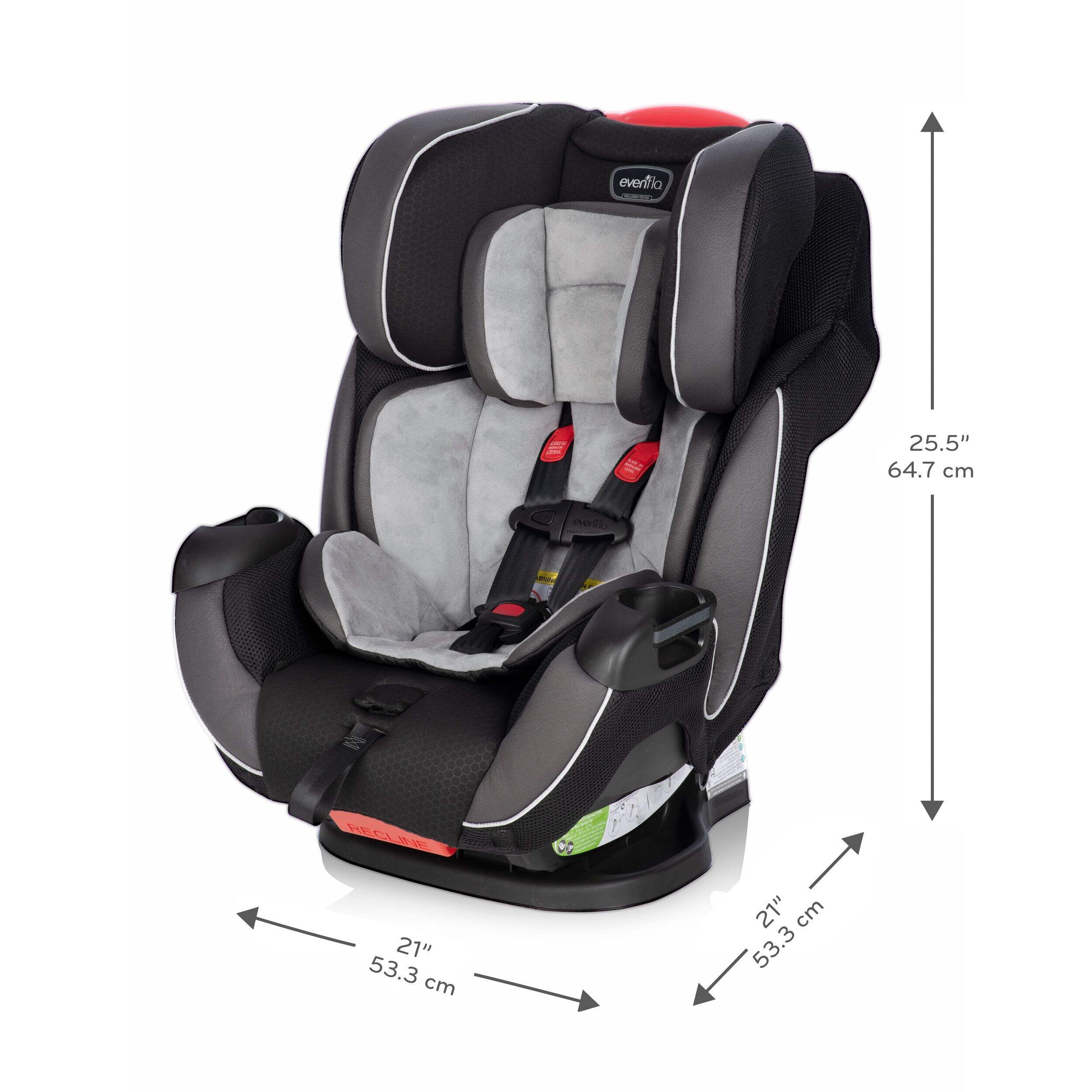 The Evenflo Symphony 3-in-1 car seat helps keep your child safe from birth through booster with a variety of safety features. This convenient toddler car seat is easy to install and features removable head and body pillows. Designed to offer peace of mind, this reliable car seat passes rollover, temperature and structural tests at double the federal standard. The comfortable cushioning ensures your child stays hassle-free during any journey.