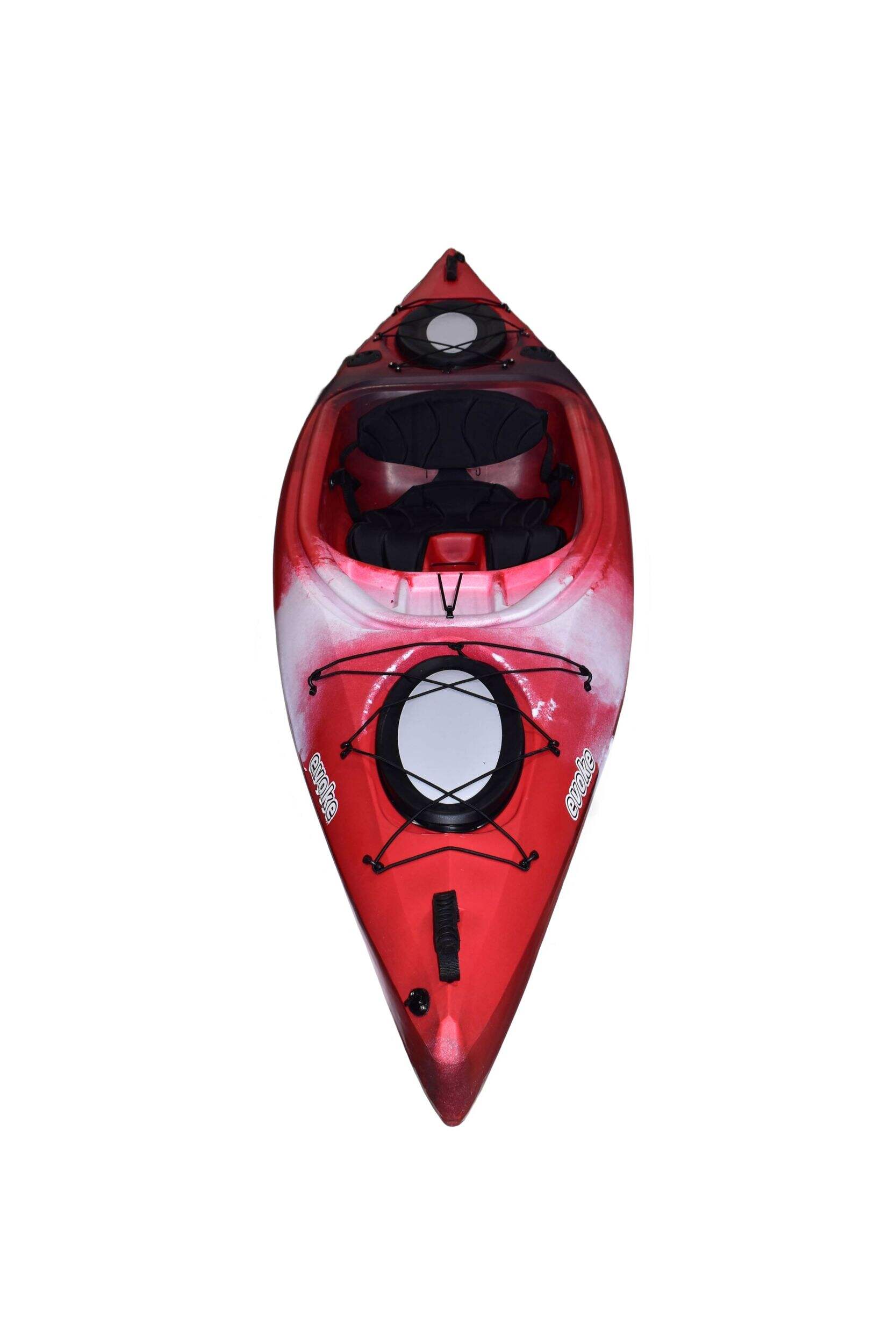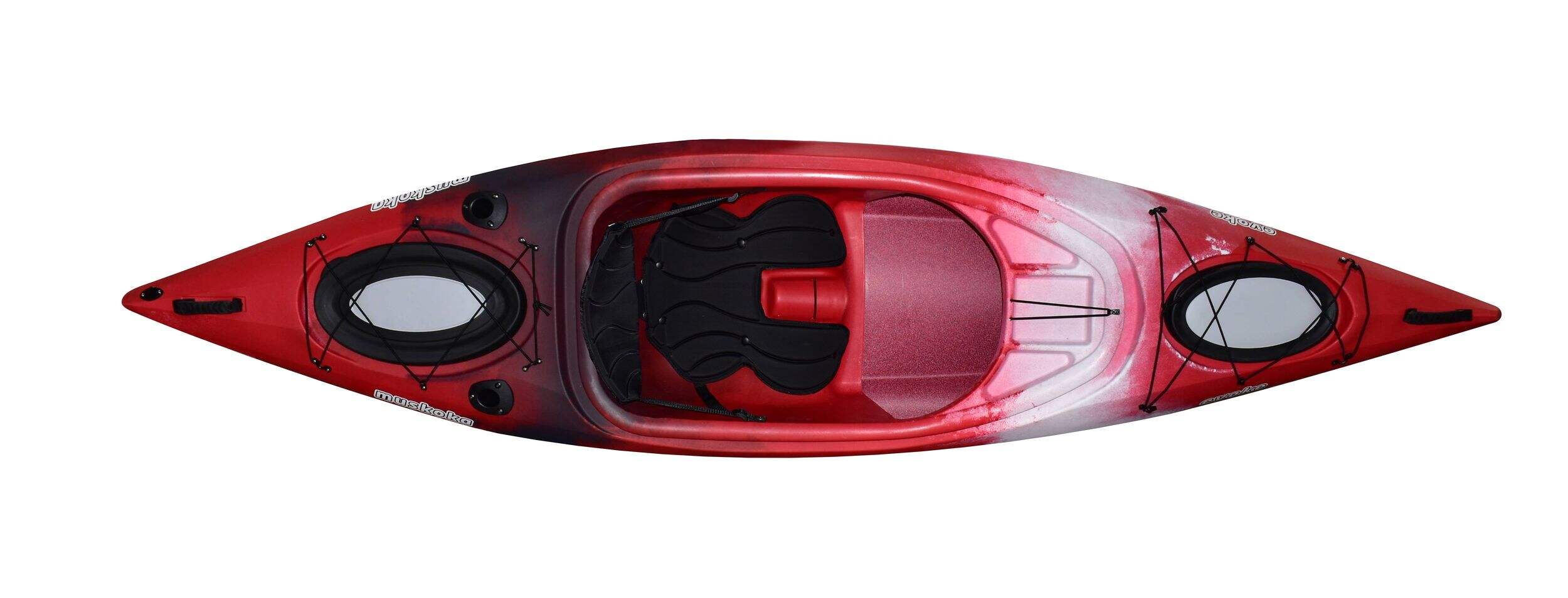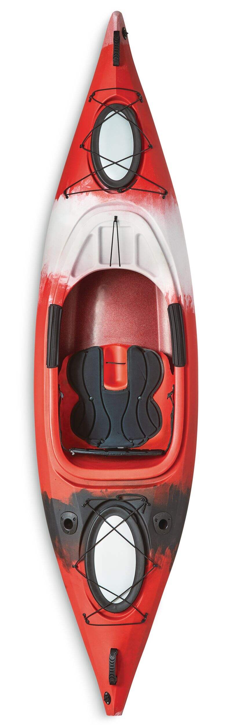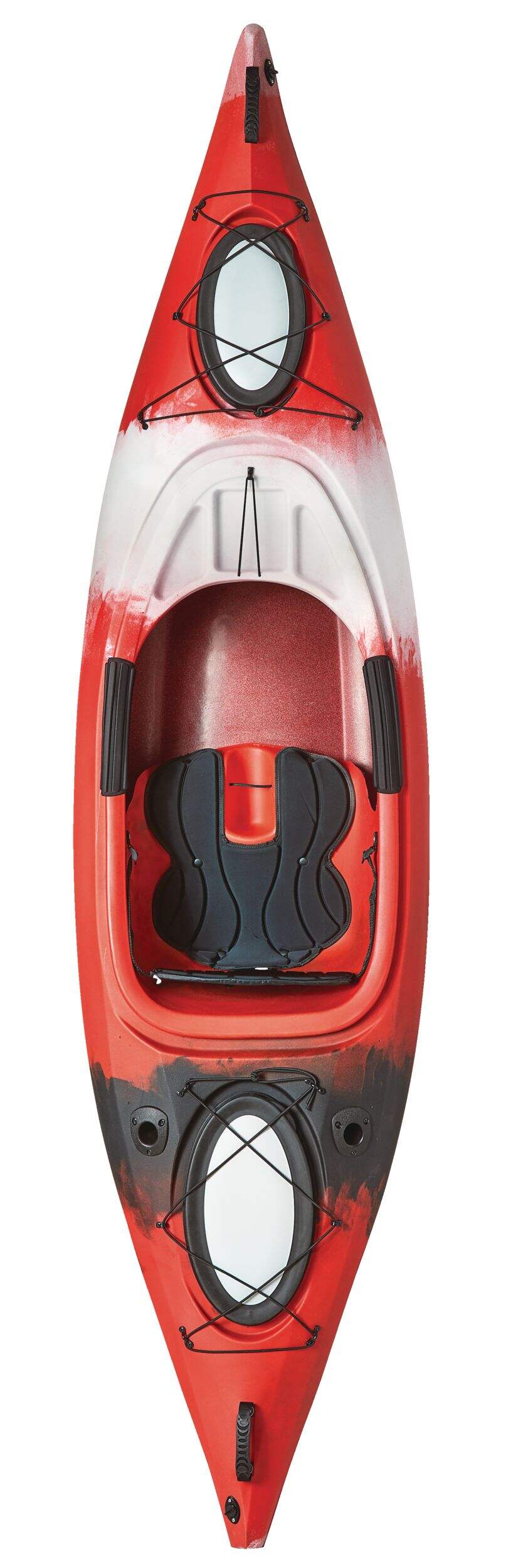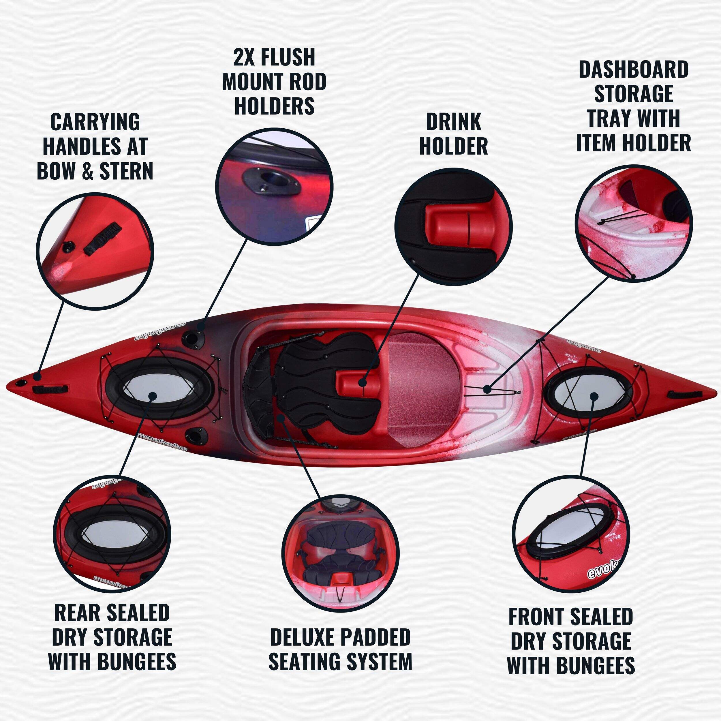 The Evoke Muskoka sit-in fishing kayak is perfect for the angler who enjoys a productive fishing experience or an occasional fun day of paddling on pristine waters. At 46 lbs., this 10 ft. kayak is easy to transport while its dihedral hull provides stability and swift tracking. The adjustable foot braces and padded seat system with a built-in bottle holder allow you to comfortably paddle through tranquil waters or rugged shorelines. Bring your essentials in the two storage hatches and keep items secure with the bungee cords. Fishing enthusiasts will appreciate the two flush mount fishing rod holders so you can reel in that trophy-sized lake trout, walleye, or bass. The Muskoka also features a cockpit table with handy compartments to keep gear at the ready. Made of UV-stabilized Fortiflex® High Density Polyethylene, the Muskoka kayak will join you for years of connecting with the natural world and pursuing your passion for fishing.