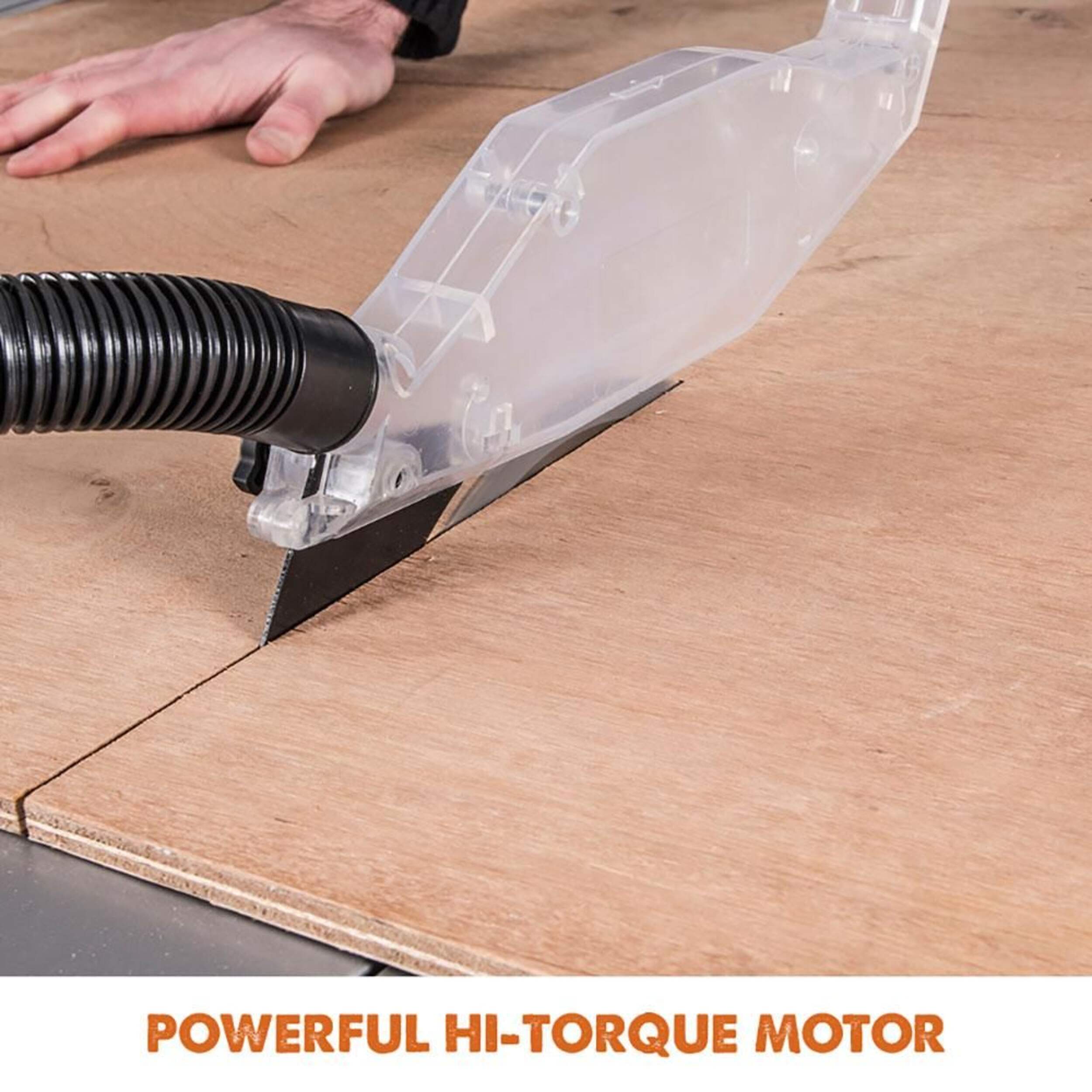 Adjust the blade height up to a maximum of 3-1/4” which is perfect for sheet material, decking and framing materials