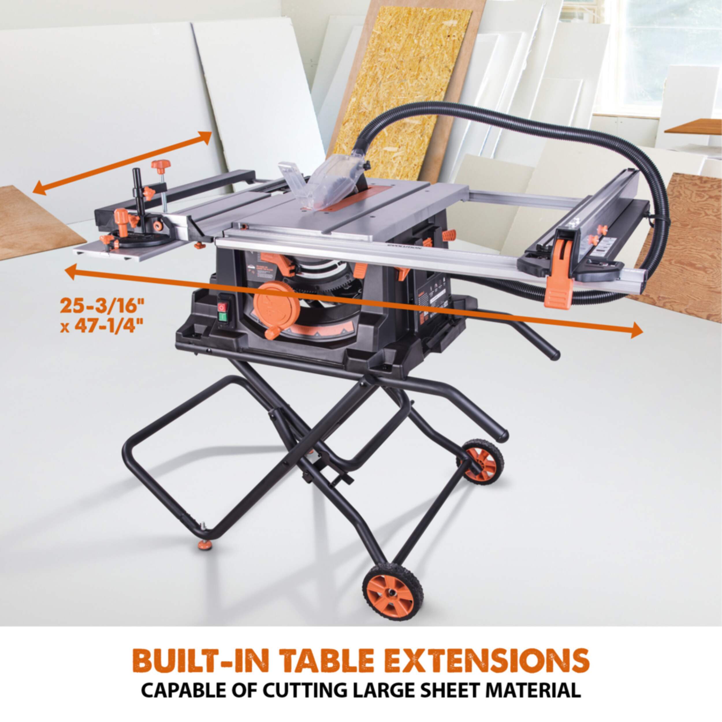 Evolution Multi-Material Table Saw features left and right table extensions that provide superior support when cutting sheet material for accurate, long cuts