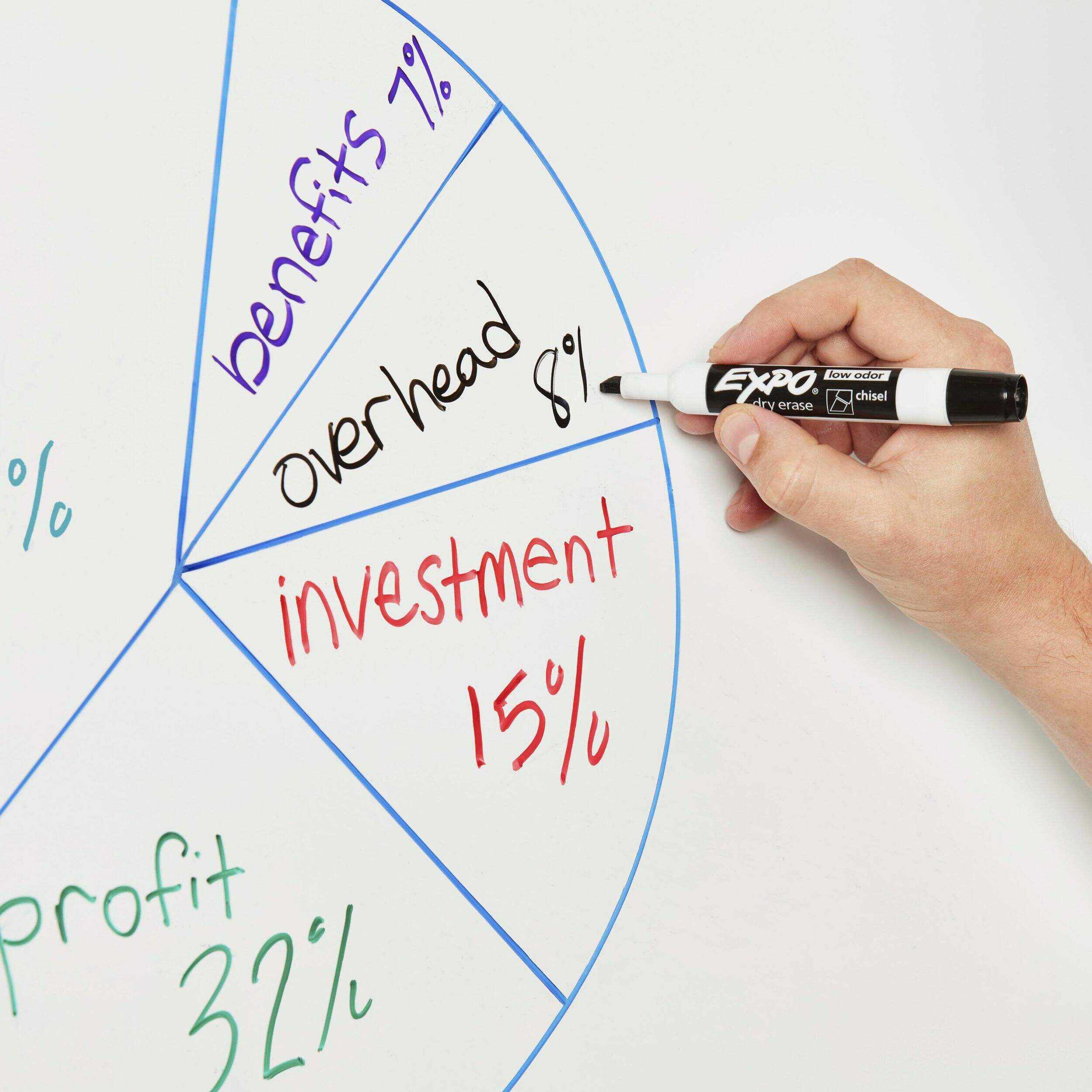Expo Low Odour Dry Erase Markers feature vivid ink that’s easy to see from a distance and provides consistent colour quality. These Expo dry erase markers erase cleanly and easily from whiteboards and other nonporous surfaces with a dry cloth or Expo eraser. The dry erase marker ink is specially formulated to be low-odor making it perfect for use in classrooms, offices and homes. Use your colourful Expo dry erase markers to track, schedule and present.
