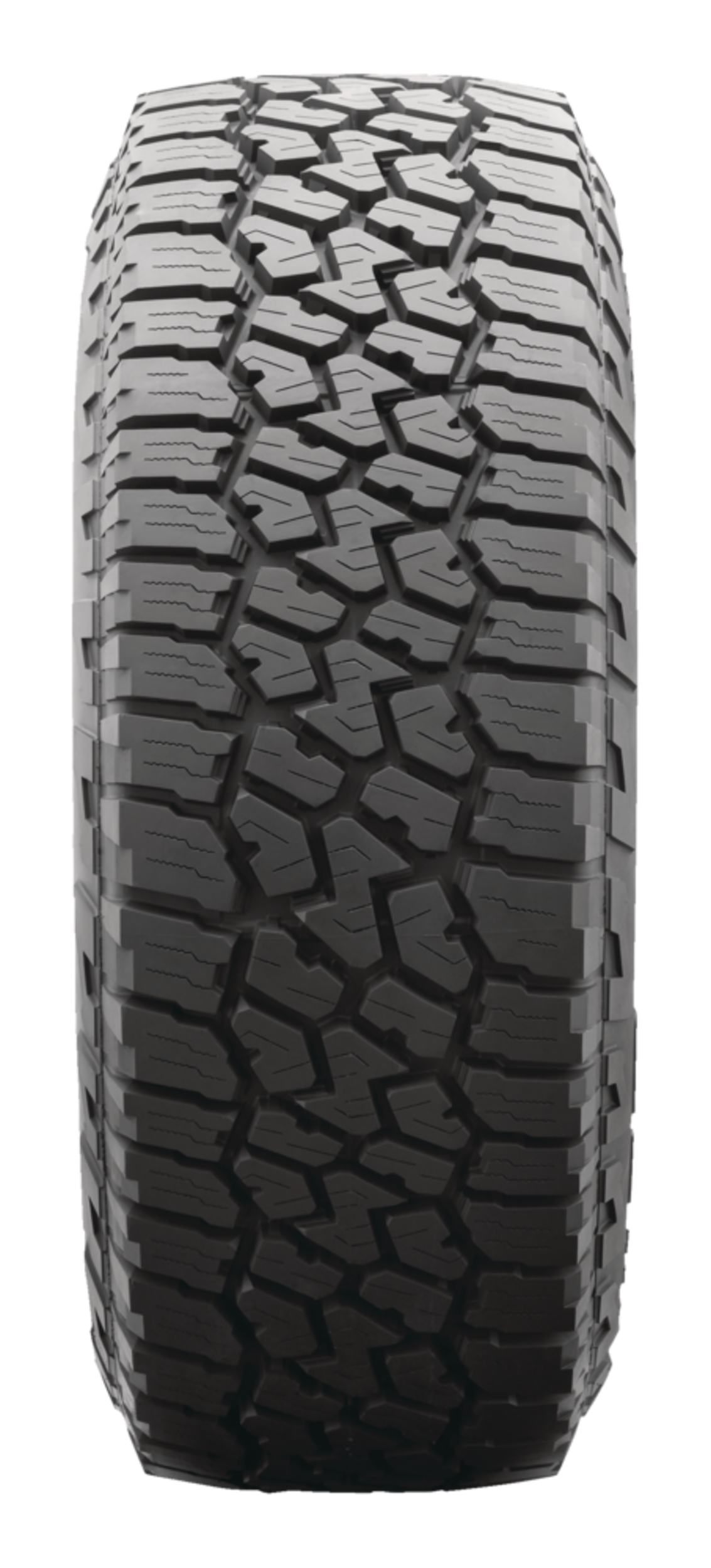 The Falken Wildpeak A/T3W was designed for those who want to conquer terrain, come rain or shine. Engineered for adventure inside and outside of the city, the A/T3W combines aggressive off-road traction with pavement performance so you never have to compromise. An optimized tread pattern together with a silica tread compound means it excels in wear, wintry conditions, and wet traction.Rated for severe snow, the A/T3W is certified by the Rubber Association of Canada for the Three Peak Mountain Snow Flake symbol.Packed with innovation from Falken's patented 3D Canyon Sipes to a proprietary lower sidewall, full-depth grooves maintain consistent performance right until the end of its life.