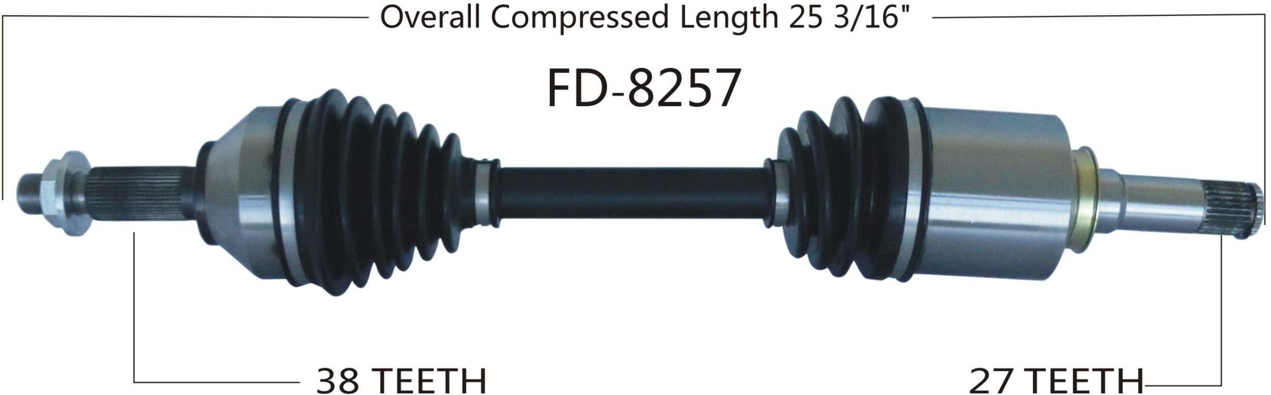 The TrakMotive New Premium CV Axle Shaft, Parts AD - JG, is meticulously crafted from top-tier materials to withstand the harshest conditions. This component is up to 20% more robust than OE and features high-performance moly grease. It boasts superior neoprene rubber dust boots for enhanced flexibility and durability. Plus, it efficiently operates at different angles and constant rotational speeds without any friction or play. Its new designs undergo rigorous torture tests to ascertain maximum durability. Additionally, the joints are filled with high-temperature, high-performance moly grease.