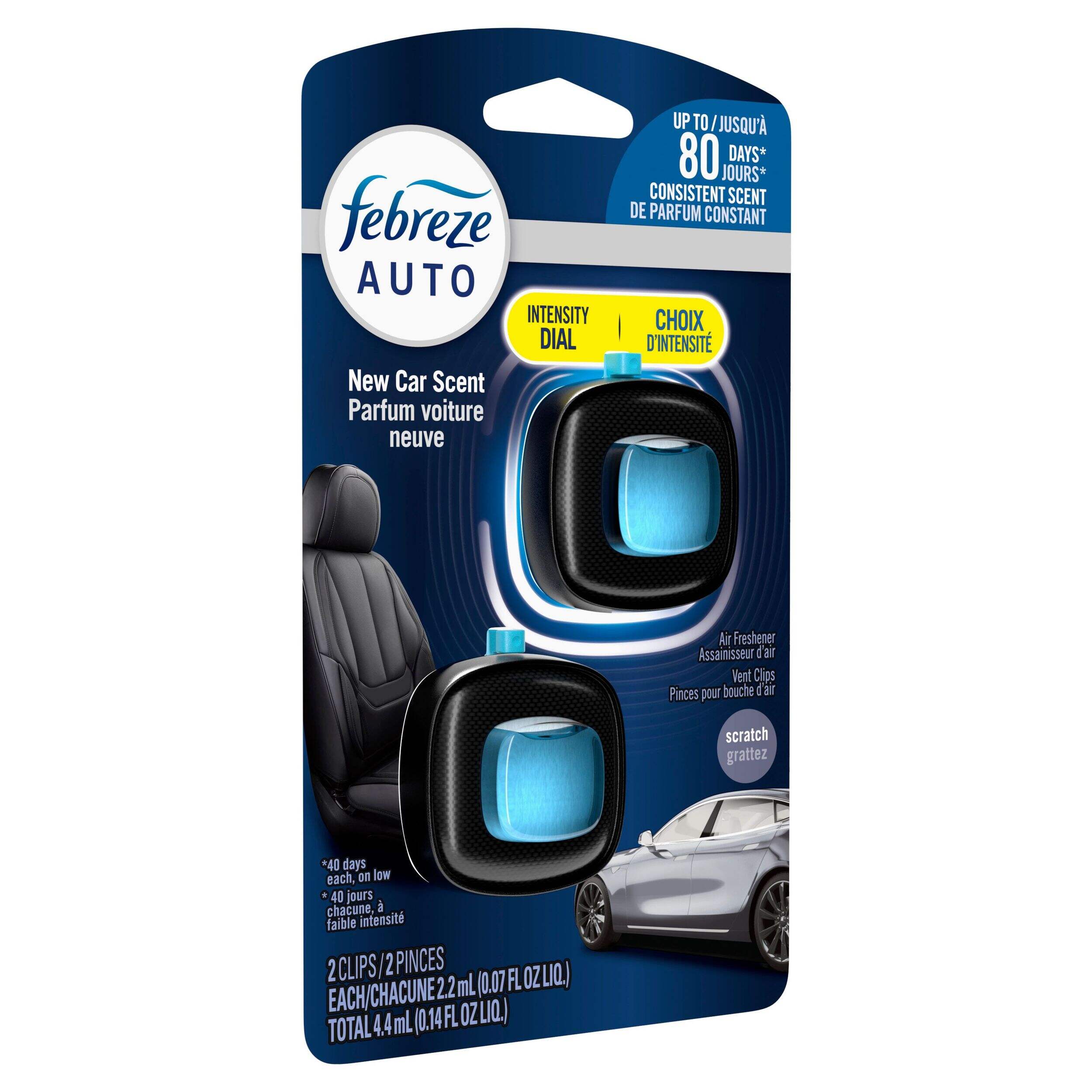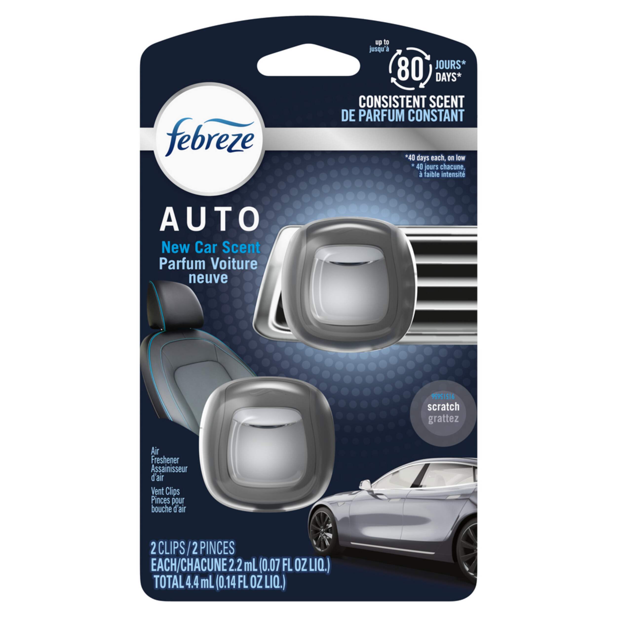 Kick car odors to the curb and enjoy up to 40 days of consistent scent with Febreze AUTO. While other car refreshers start off like a floral punch in the face, Febreze smells just right, right away. You’ll get that first-day Febreze fresh for up to 40 days courtesy of its patented Steady Release Technology. This car air freshener vent clip is a breeze to install: Just unfold the clip until you hear a click, then clip it to your vent. Whether you’re one month or six road trips into your ride, it can smell brand new with the violet, amber, and vanilla scent of New Car. These tiny car deodorizers are made with odor fighters that fight any car stink with a scent that lasts. So forget those overwhelming, fade-too-soon fresheners and enhance every drive with the long-lasting freshness of Febreze AUTO. Want a fresh that lasts at home, too? Try Febreze Fade Defy PLUG.