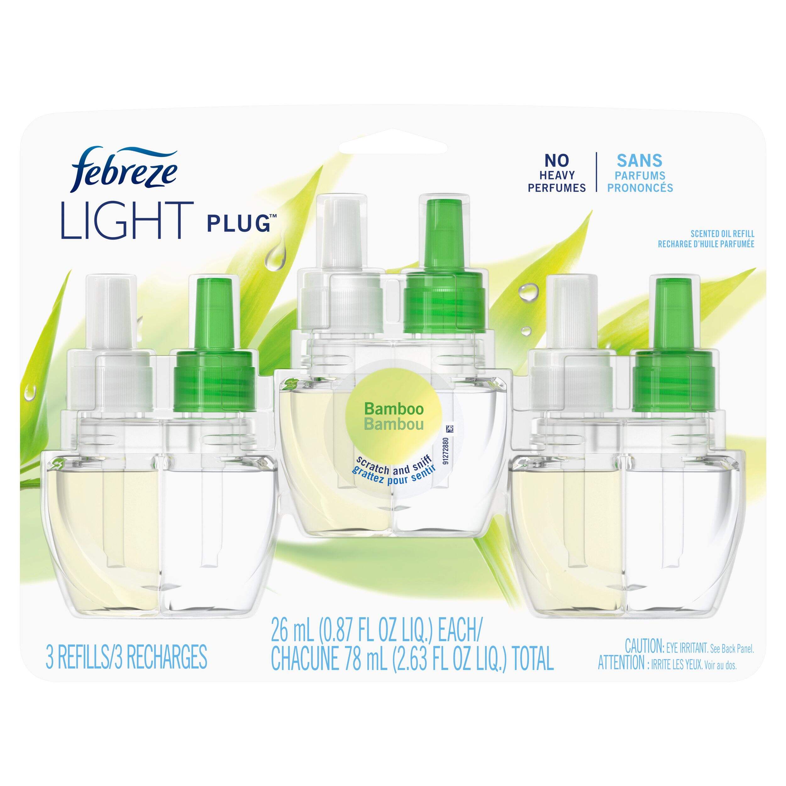 Looking for a lighter way to freshen up instead of masking odors with heavy scents? Clear the air with a Febreze LIGHT Fade Defy PLUG Air Freshener refill and fight odors with no heavy perfumes. With Fade Defy Plug’s digitally controlled scent release, you can say goodbye to stinks with a first-day, no-fade pluggable freshness that lasts 50 days (on low). Just plug the warmer into any outlet in your home, like the kitchen, your bedroom, or the living room. With relaxing scents of watery, green, and floral, LIGHT Bamboo will transport your senses to a magical rainforest. Best of all, the Fade Defy Plug has a low-level indicator light… so you know when to swap in a new Febreze refill.