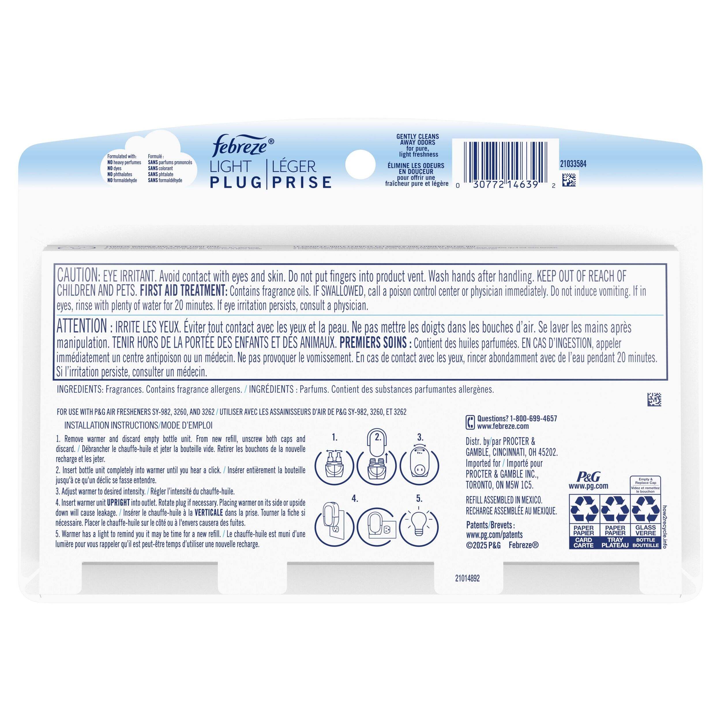 Contains light scent oil refills for Febreze plug with Fade Defy technology