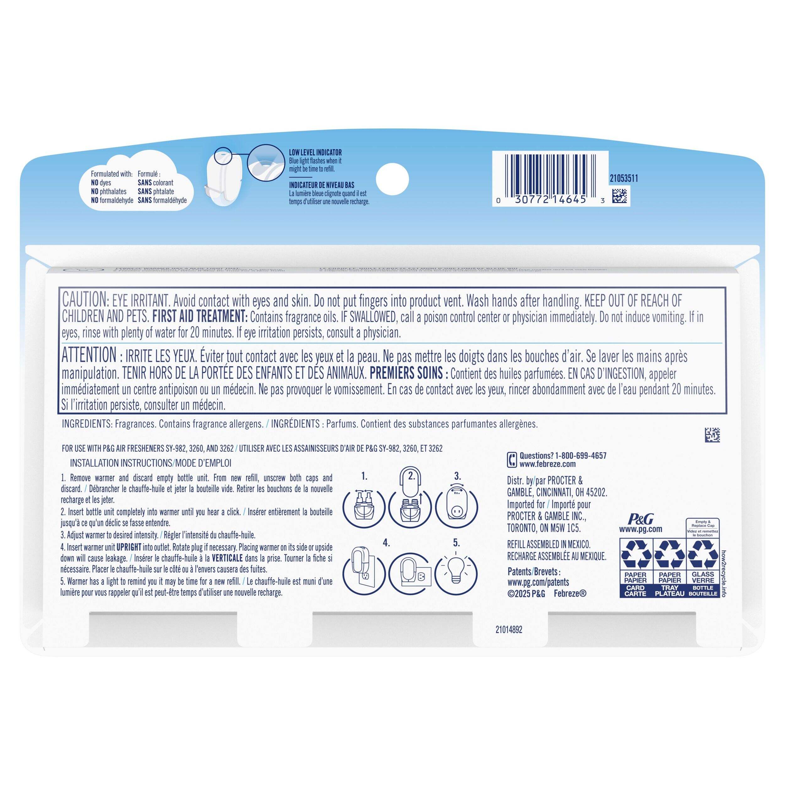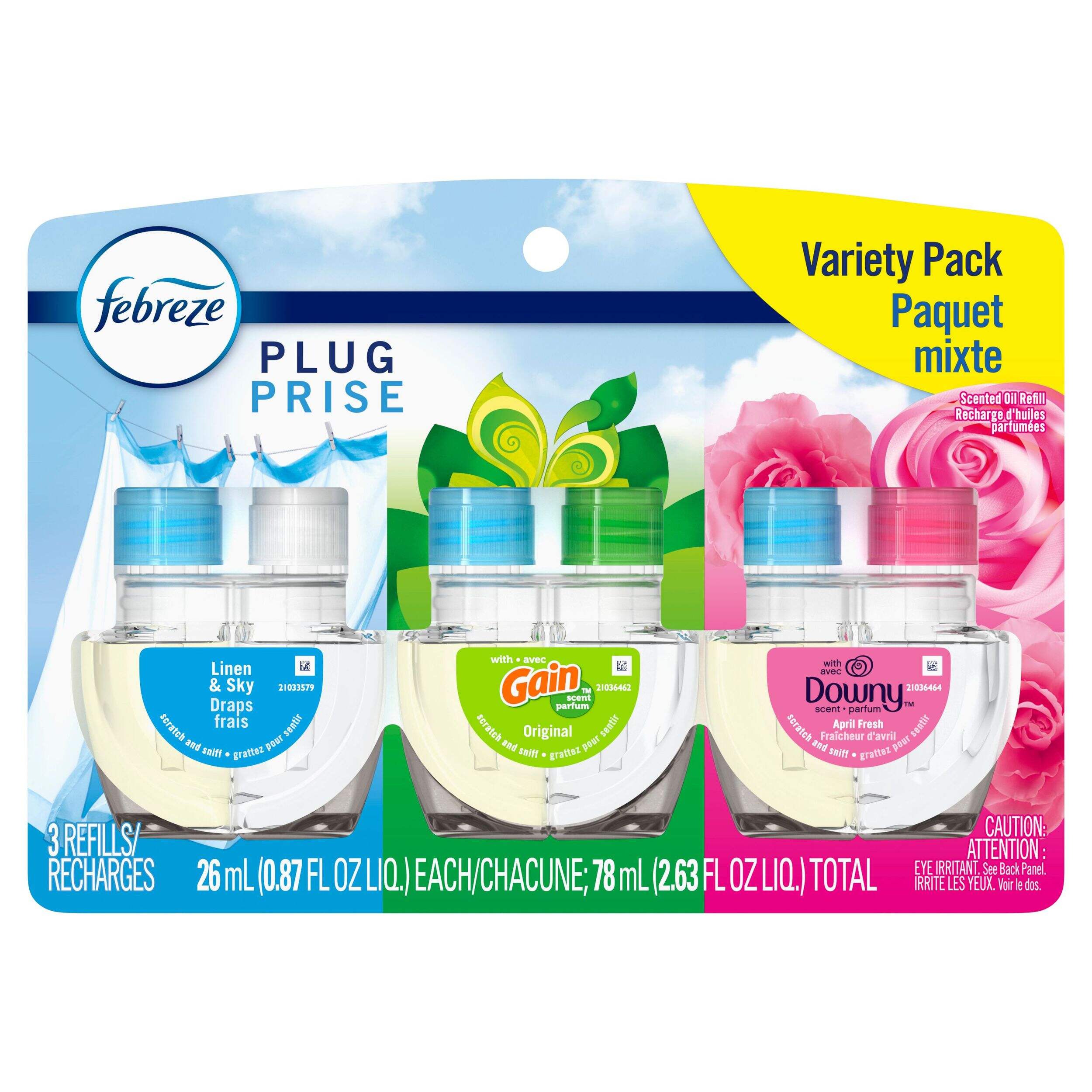 The Febreze Plug Scented Oil Refill, 3-pk, will keep your home smelling fresh for up to 50 days with its fade-defy technology. Simply insert the scented oil into your Febreze plug-in air freshener and let the continuous, automatic scent release keep odors at bay. Each refill provides a first-day freshness that lasts, eliminating musty smells from bedrooms, kitchens, and hallways. This pack includes three refills in your choice of scents, so you can change up the fragrance to match the season or your mood. The digitally controlled release ensures the perfect amount of fragrance at all times, creating a pleasant aroma without being overpowering. Breathe easy - your home will have that just-cleaned scent you love for weeks on end.