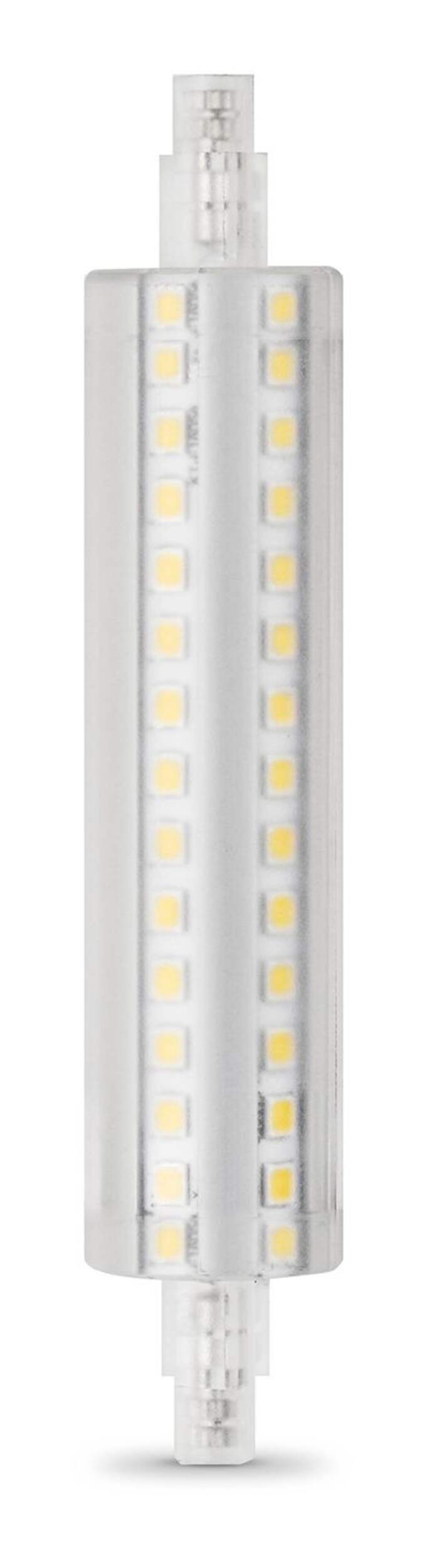 Enjoy all the benefits of advanced LED energy-saving technology with the Feit Electric BPJ118/LED 60W R7S LED Light Bulb. This 3000K warm white light is non-dimmable and will replace 60-watt equivalent incandescent bulb. It produces a similar light output (800 lumens), uses 8 watts of electricity and up to 88% less energy than a standard incandescent light bulb. Get instant on to full brightness with relatively cool running performance. Feit Electric R7S bulbs have an average life of 15,000 hours/13.7 years are RoHS compliant and are 100% mercury free. Choose a dependable accent fixture and torchiere table or floor lamp lighting bulbs for residential or commercial applications.