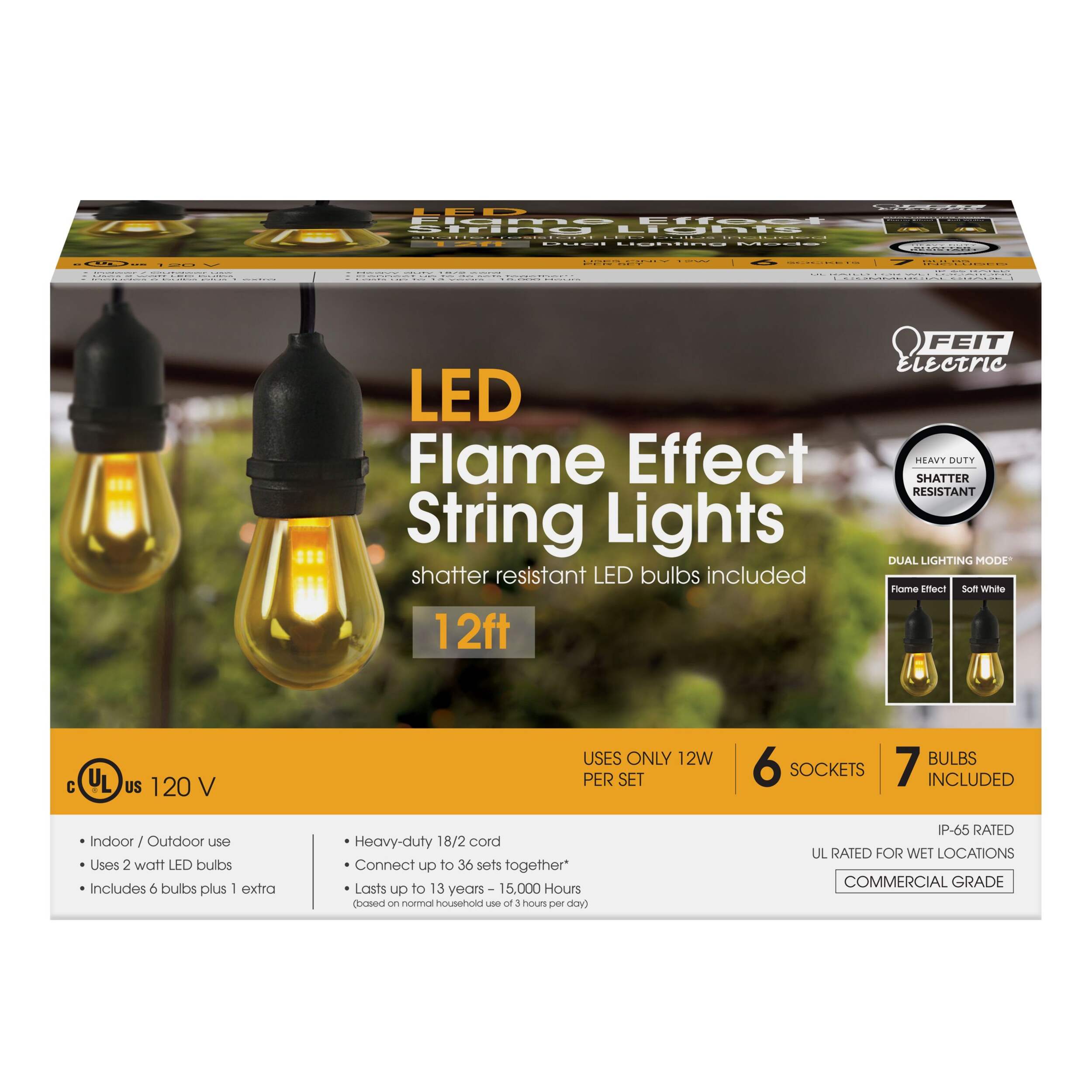 The Feit LED Flame Effect String Light is the perfect addition to your outdoor space, offering both beauty and convenience. Simple to install, just hang and plug it into a regular wall outlet. Designed to withstand extreme temperatures and wet weather, it’s built for durability. Switch between a realistic flame glow and soft white light with a simple flip of a switch. The lights connect end-to-end safely, making it easy to illuminate a variety of outdoor areas for any occasion.