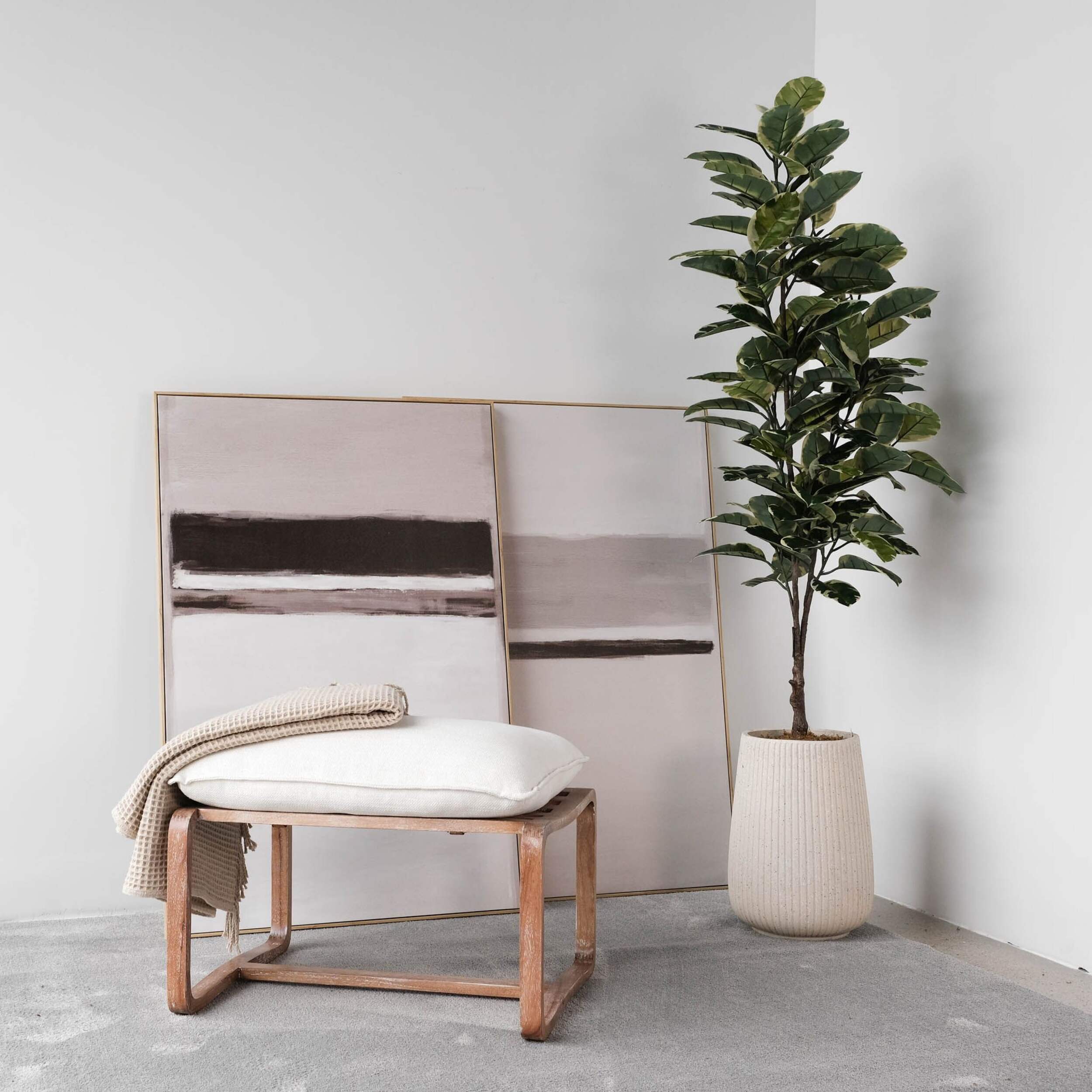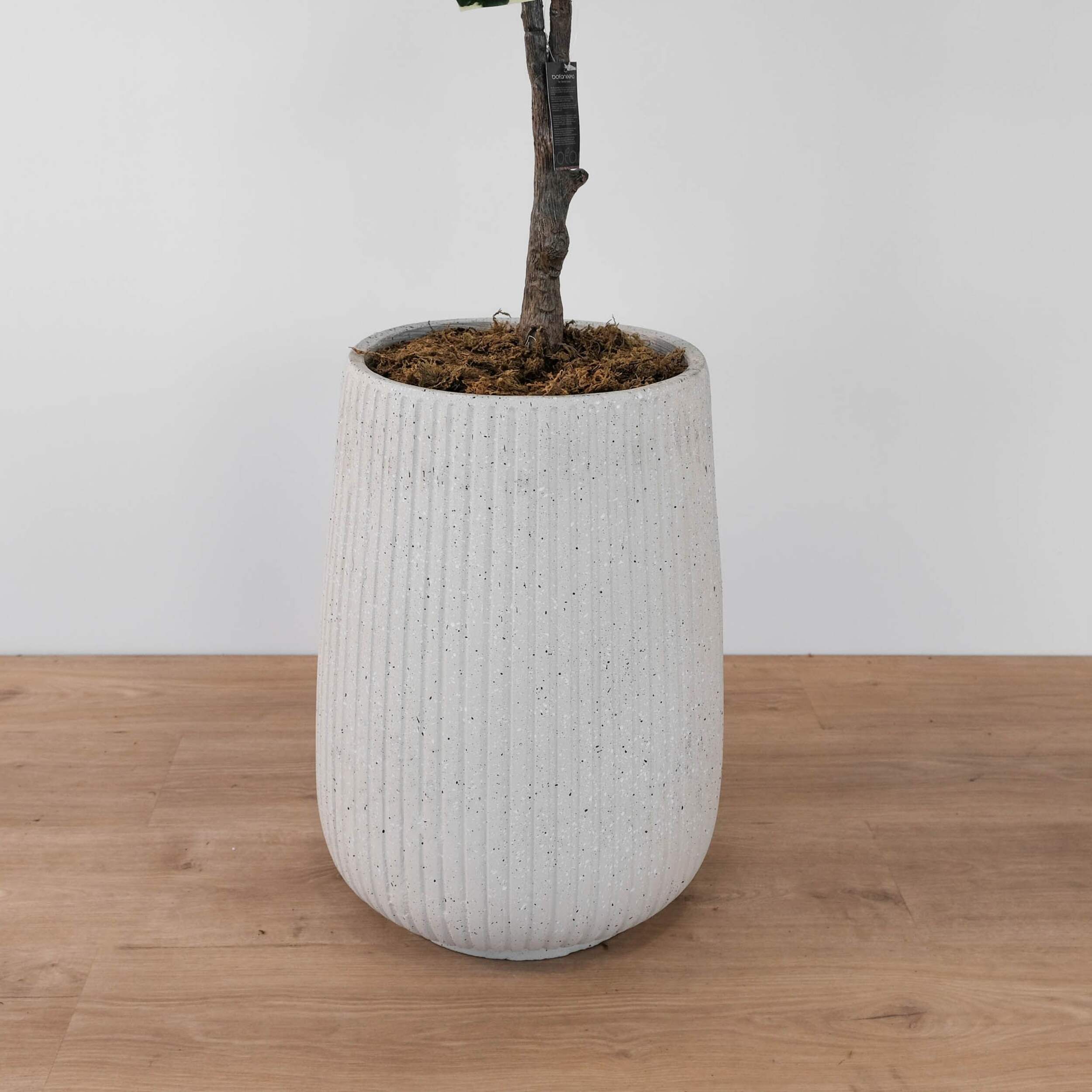 This ficus lyrata bonsai is ready to add instant greenery to your home or office. The lush 120 leaves and realistic looking trunk in a pre-planted fiber clay pot make setup effortless. The stone appearance of the sturdy pot will complement any decor style. The fiber clay material and easy-wipe leaves mean low maintenance so you can enjoy the tropical appearance for years.