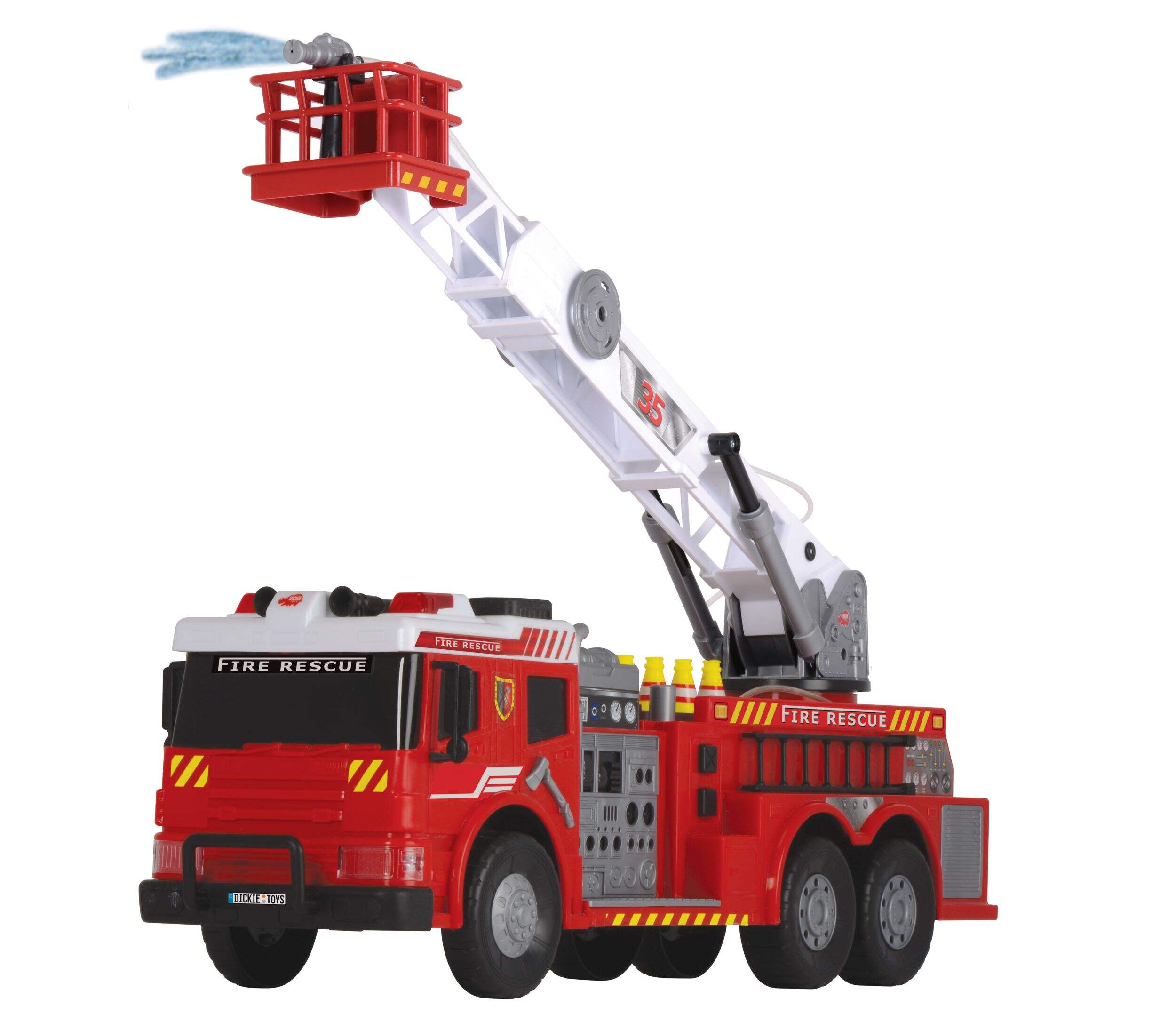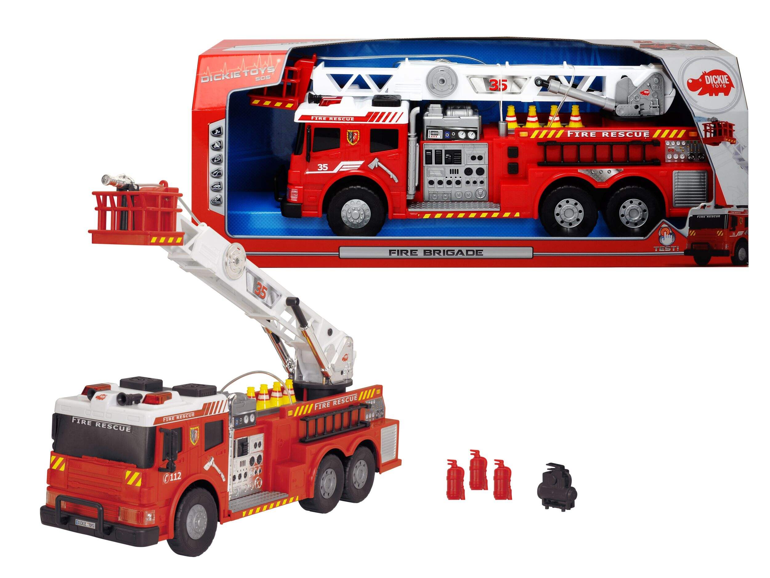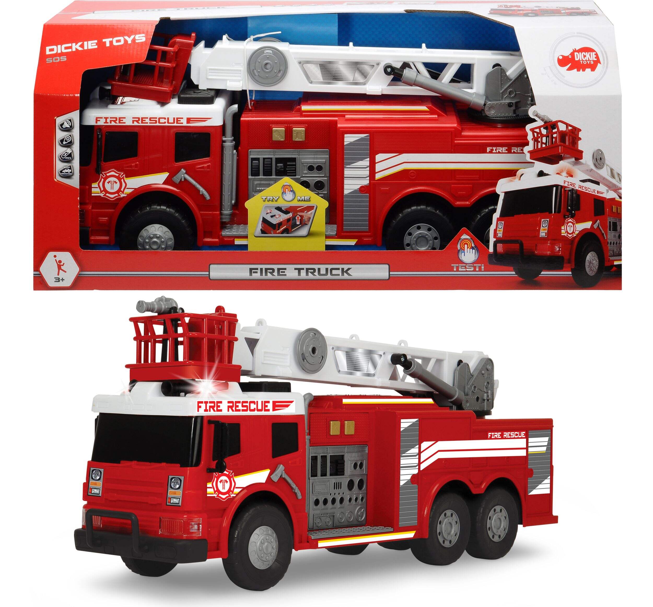 Helmet on, blue light on, off we go to the scene of the accident! To be a fire fighter for a day - that's a dream that makes children's eyes glaze over. The Dickie Toys SOS Fire Engine transforms children into responsible firefighters and gives them an insight into the profession through play. Acceleration is controlled manually and light and sound effects signal the arrival of the rescue team. The fireman's hose functions manually and other accessories including fire extinguishers and cones provide even more fun for children playing at being emergency helpers. The sheer detail makes the exciting rescue mission come alive before the eyes of the budding firefighters. Give children a gift from the Dickie Toys range with all of their fantastic features!