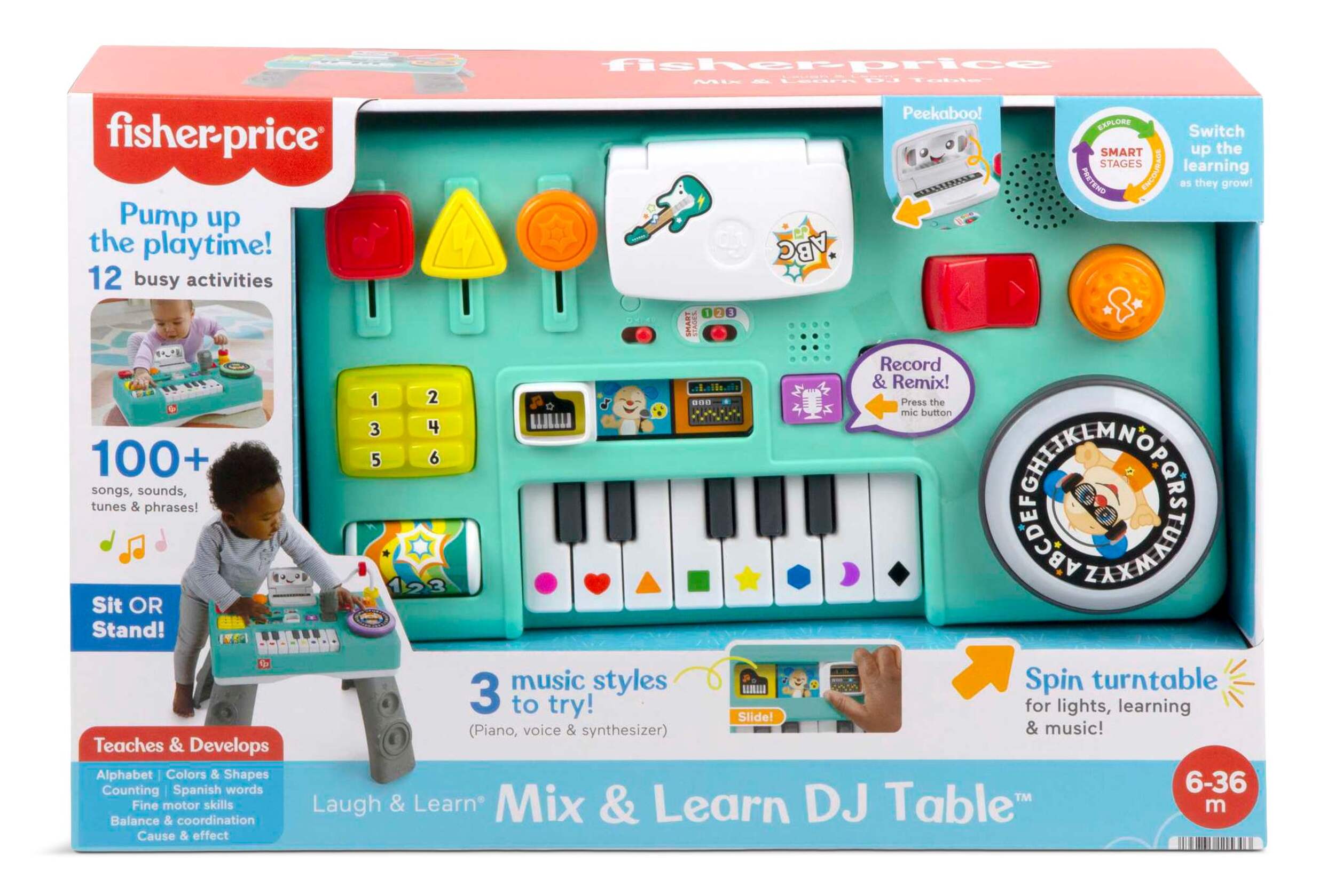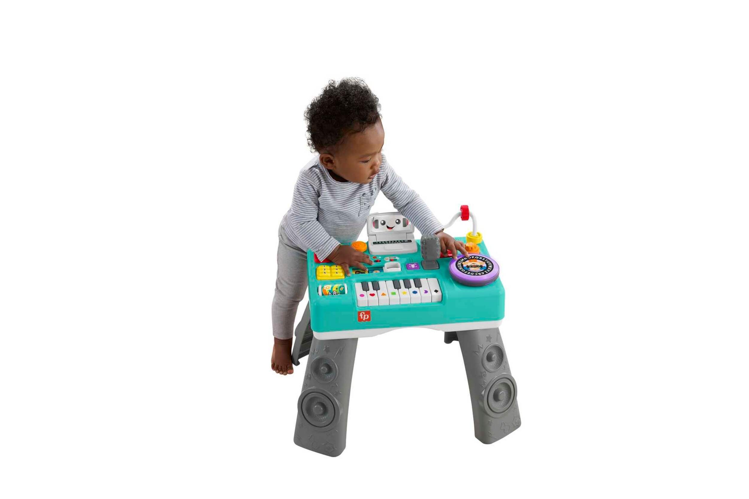 Little music-makers can unleash their creativity with the Fisher-Price® Laugh & Learn® Mix & Learn DJ Table™ activity center. This interactive toy features a piano with three engaging play modes, allowing kids to explore sounds, melodies, and rhythms. Packed with multiple motor activities and Smart Stages® learning levels, it adapts to your baby's growth, ensuring continuous fun. The legs can be removed for sit-at-floor play, then attached for standing DJ action as your little one learns and rocks out.