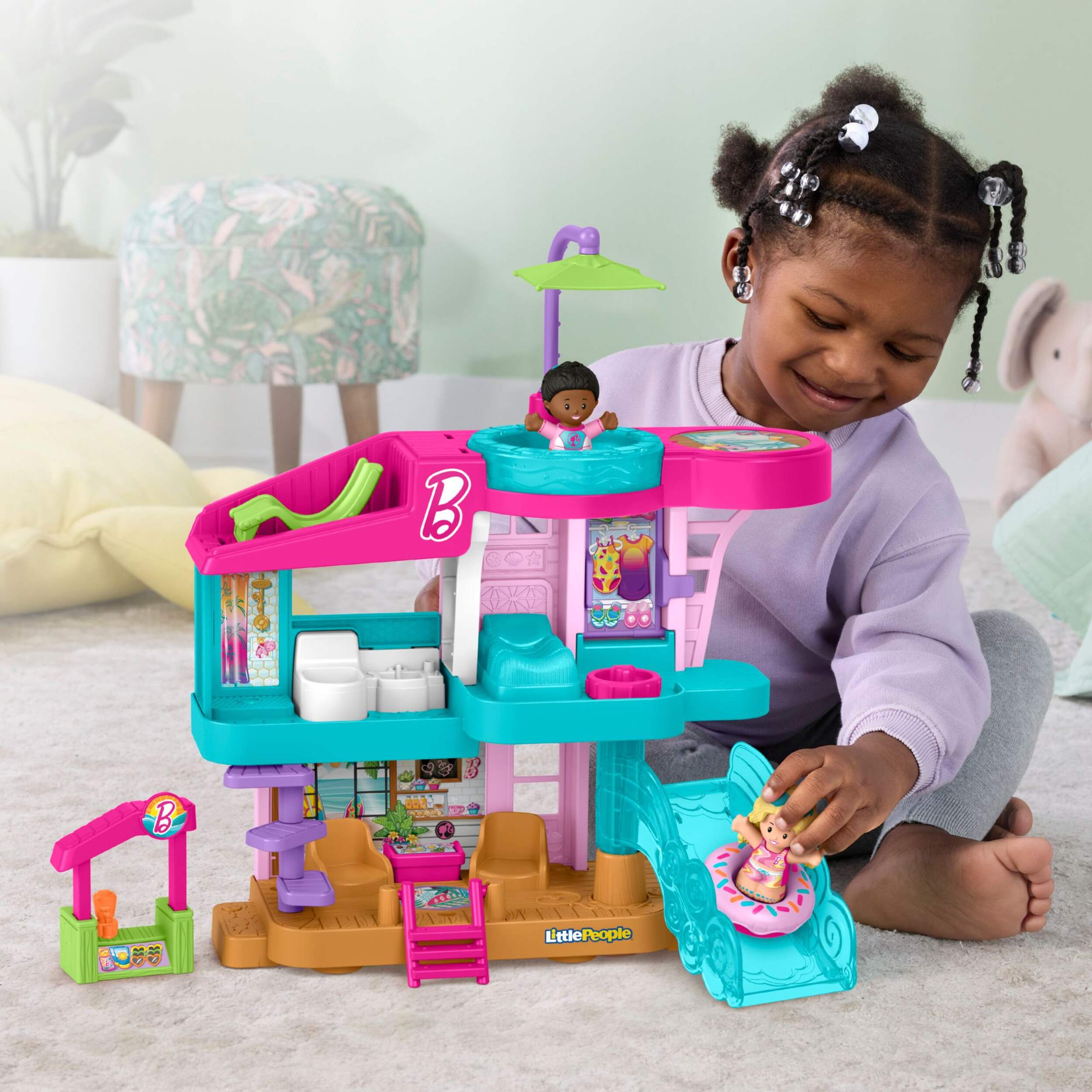 Toddlers can head to the beach for endless pretend play with this Little People Barbie Beach House playset from Fisher-Price