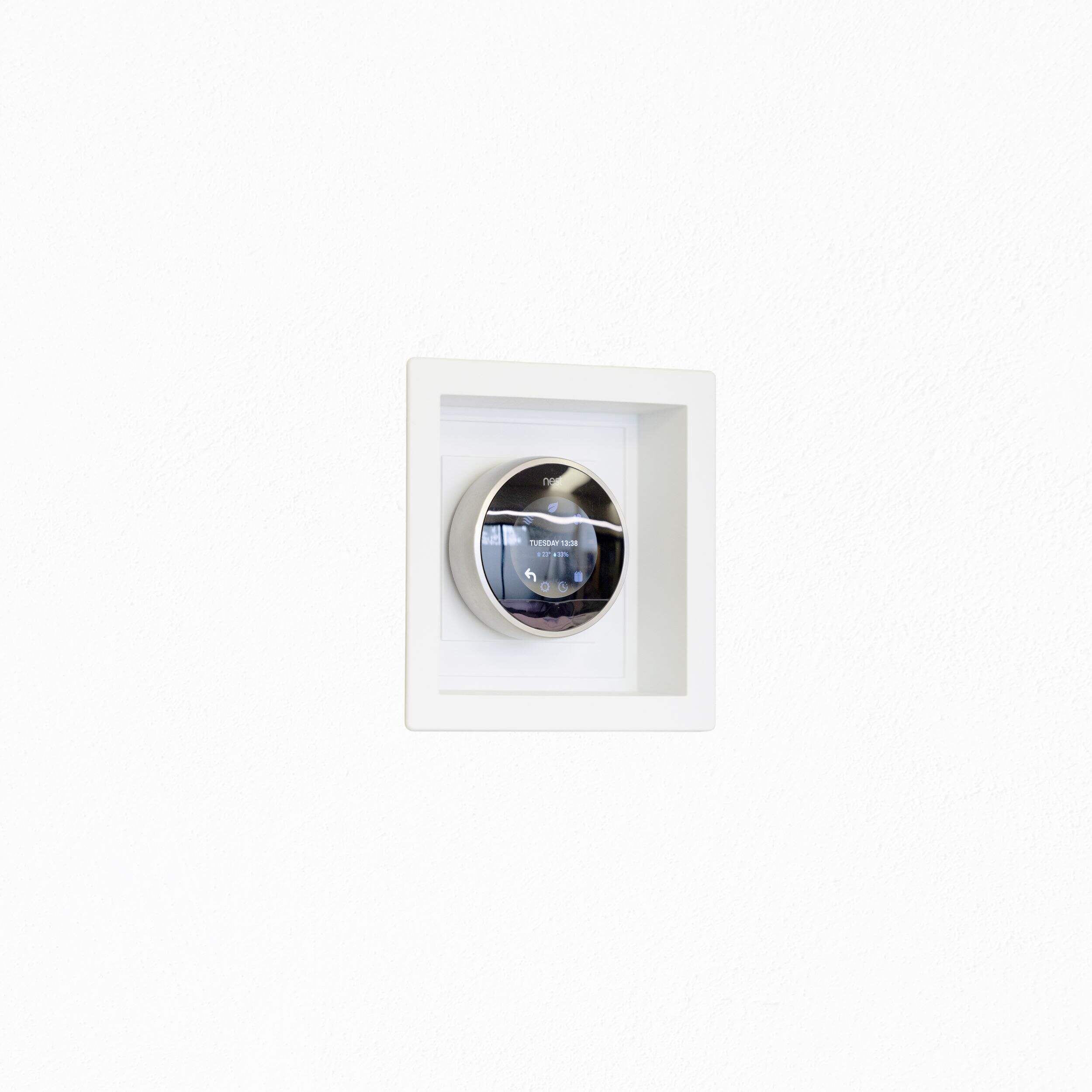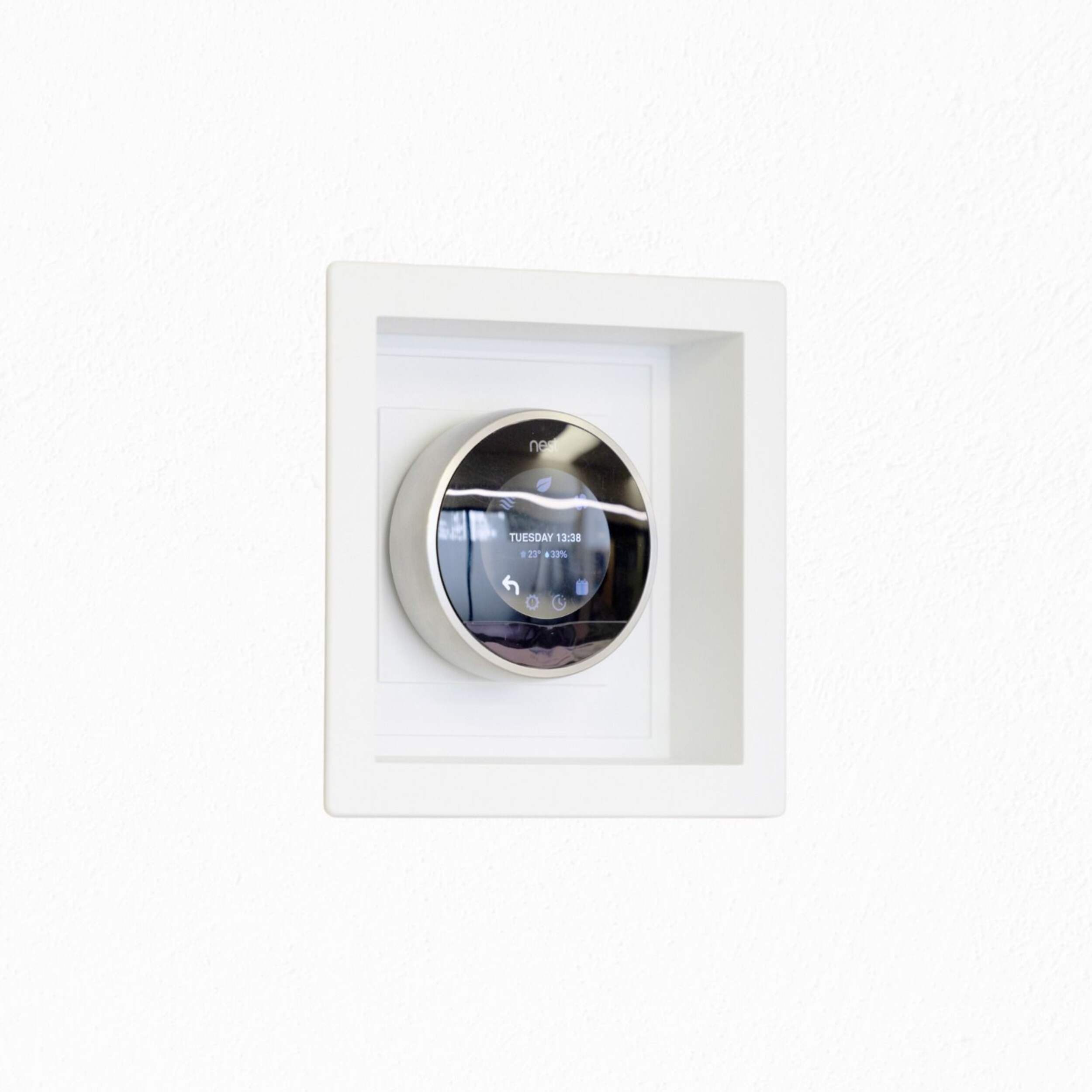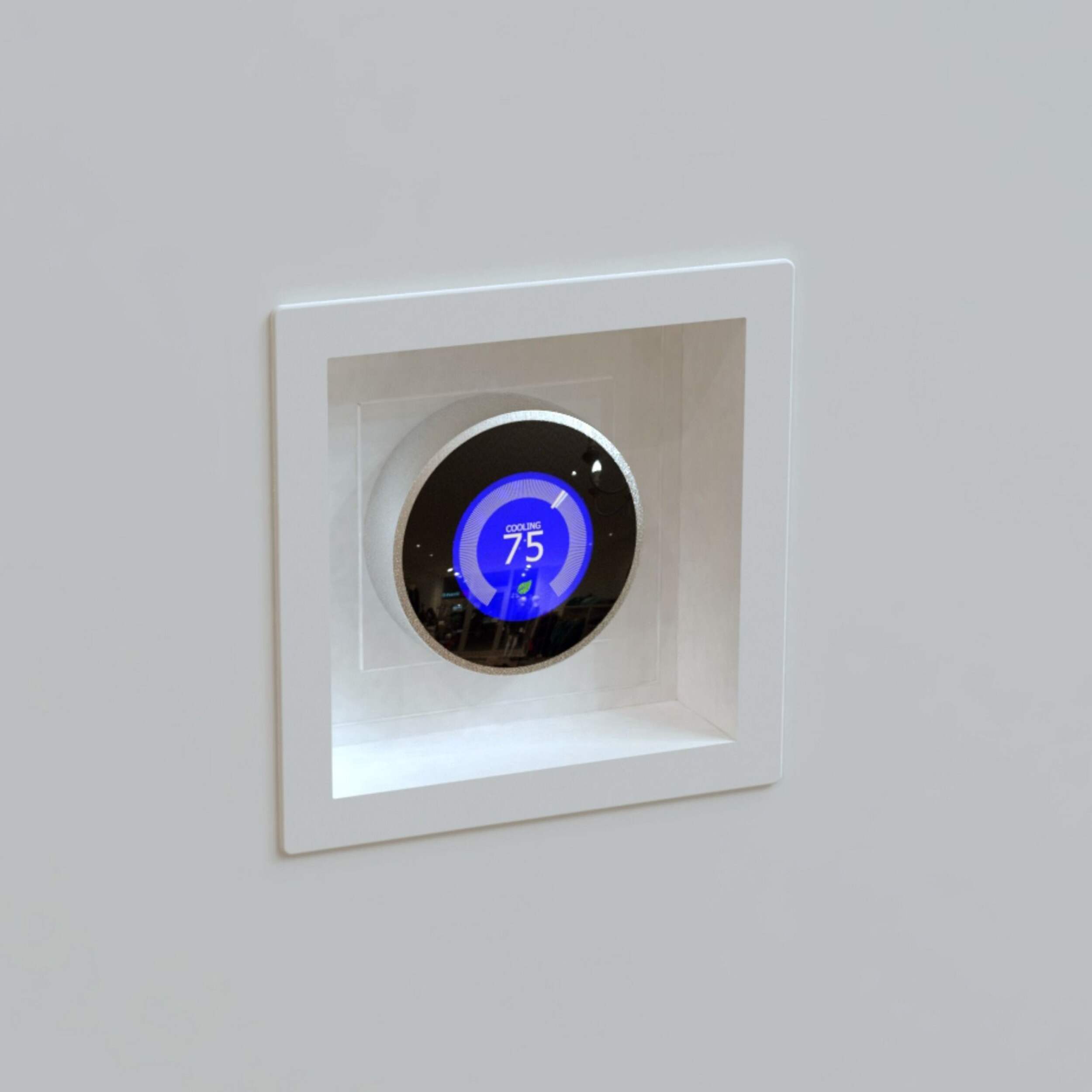 The Fittes Framed Drywall Device Mount offers a better looking alternative to obstructive, thermostat mounting plates