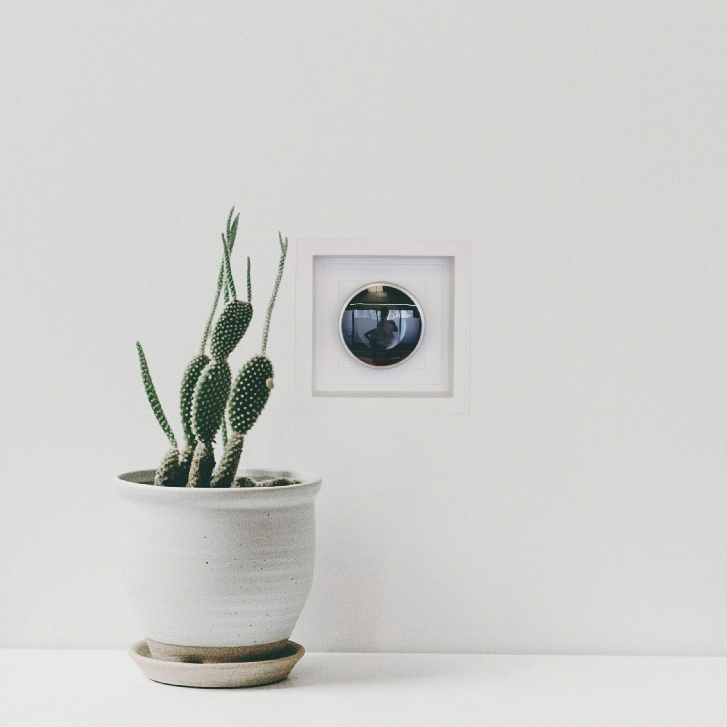 Minimalist framed recessed device mount. Super-easy, DIY-friendly, drop-in install lays on top of the surface. Can be used for pot lights, thermostats, keypads or any device under 5 x 5-in (12.7 x 12.7-cm).
