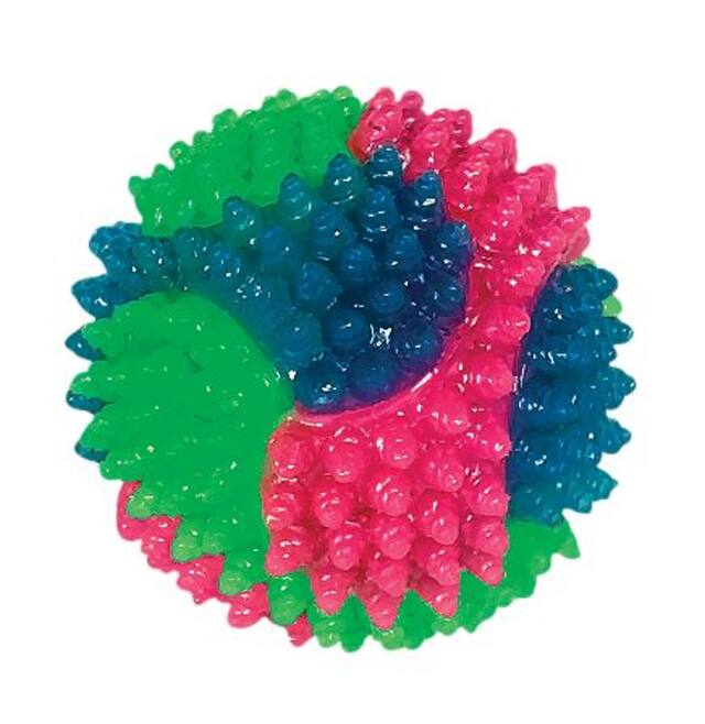 Colourful ball features fun, rubber spikes and lights up as you bounce and play
